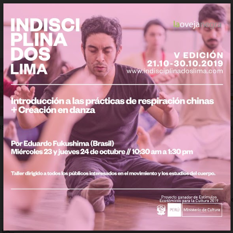 Se busca dar a conocer el taller Introducción a las prácticas de respiración chinas + Creación en danza que ofrecerá nuestro invitado Eduardo Fukushima (Brasil), los días miércoles 23 y jueves 24 de octubre de 10:30 am a 1:30 pm en el espacio Tumbes 204, Barranco.