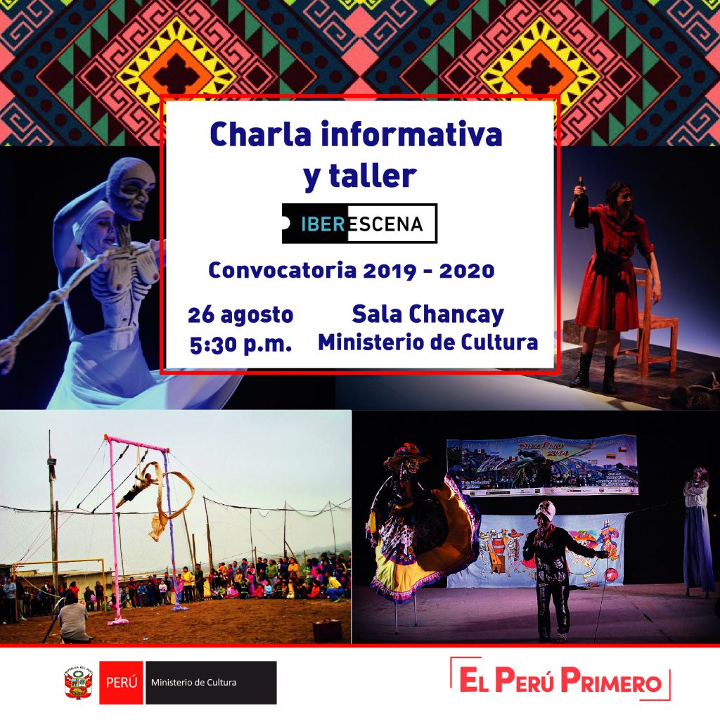 En el marco de la convocatoria al Fondo de Ayudas Económicas a las Artes Escénicas IBERESCENA 2019, la Dirección de Artes del Ministerio de Cultura, como representante de Perú ante el Fondo, organiza una charla informativa para el sector de artes escénicas (circo, danza y teatro).
