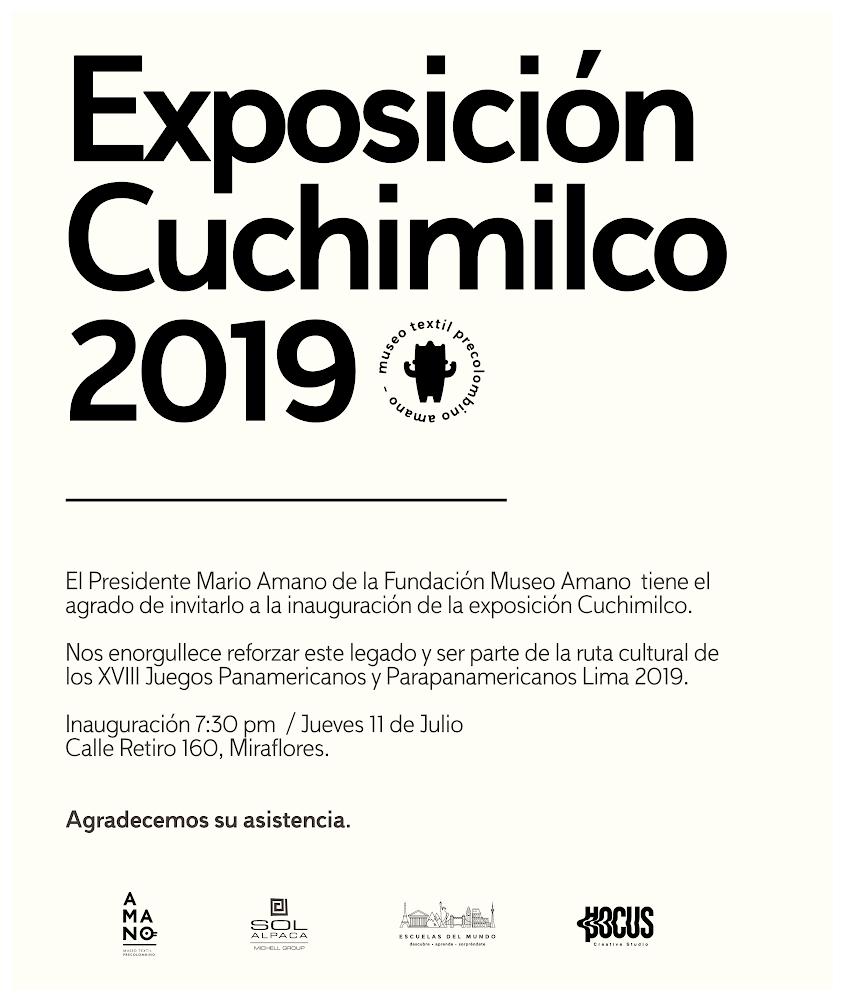 el 26 de agosto con la Exposición "Cuchimilco" especialmente para ser parte de la Ruta Cultural de los XVIII juegos panamericanos y parapanamericanos Lima 2019,además de relanzarse y darse a conocer a más peruanos