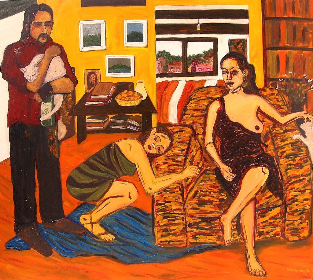 Las escenas personales son temas recurrentes: el taller del pintor, el dormitorio, los espacios donde él vive o los lugares que han marcado su huella imaginativa, matizados por un gusto sensual, que aborda incluso lo erótico. Es en esta realidad carnal, donde la propia imagen del artista participa en claras oportunidades desde lo interno como lo externo, las implicaciones perturbadoras de sus imágenes ofrecen múltiples lecturas.