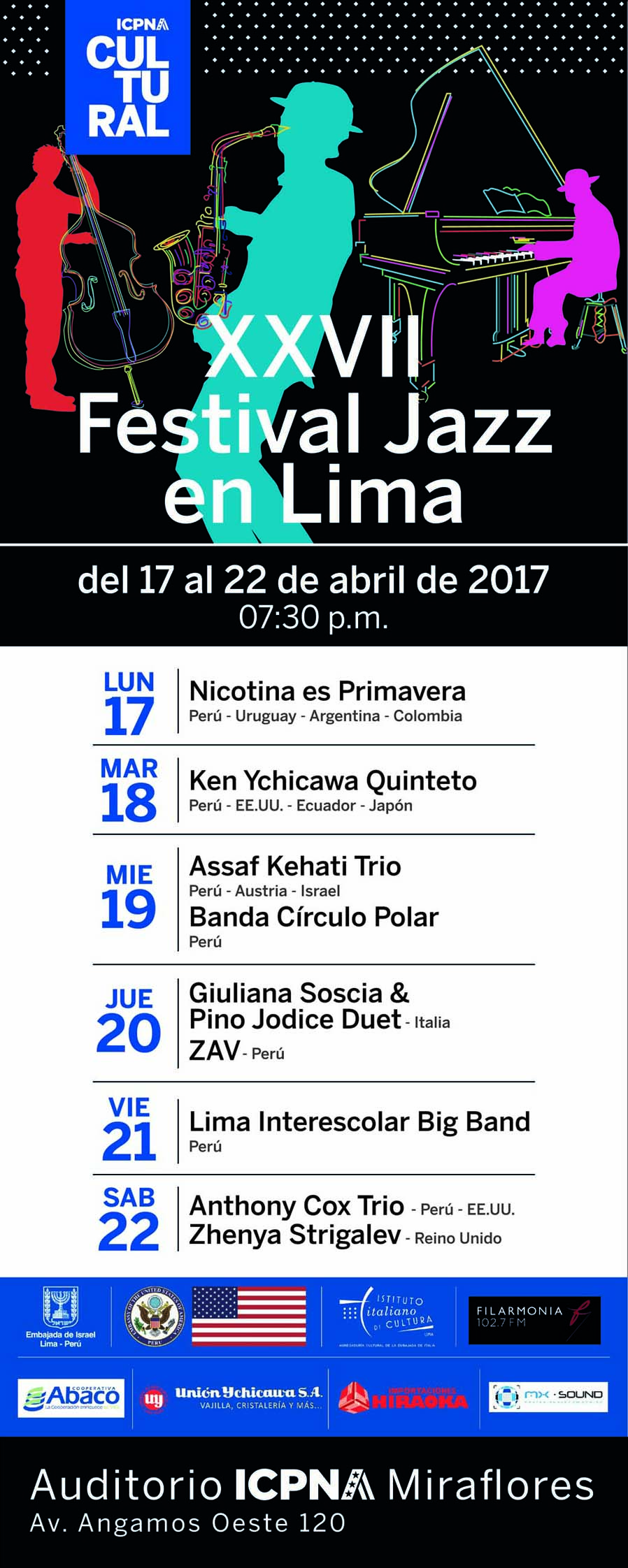 PROGRAMACIÓN 27 FESTIVAL JAZZ EN LIMA (Abril 2017)