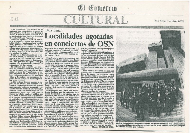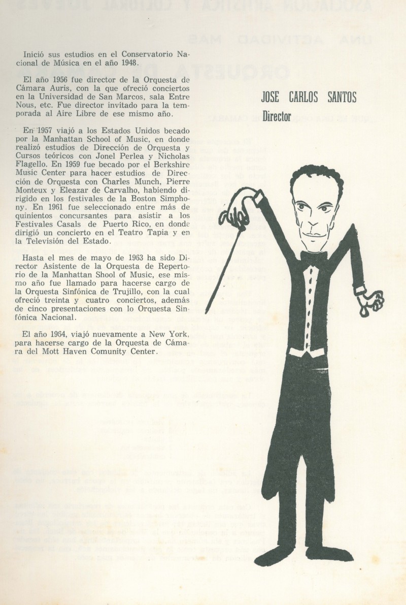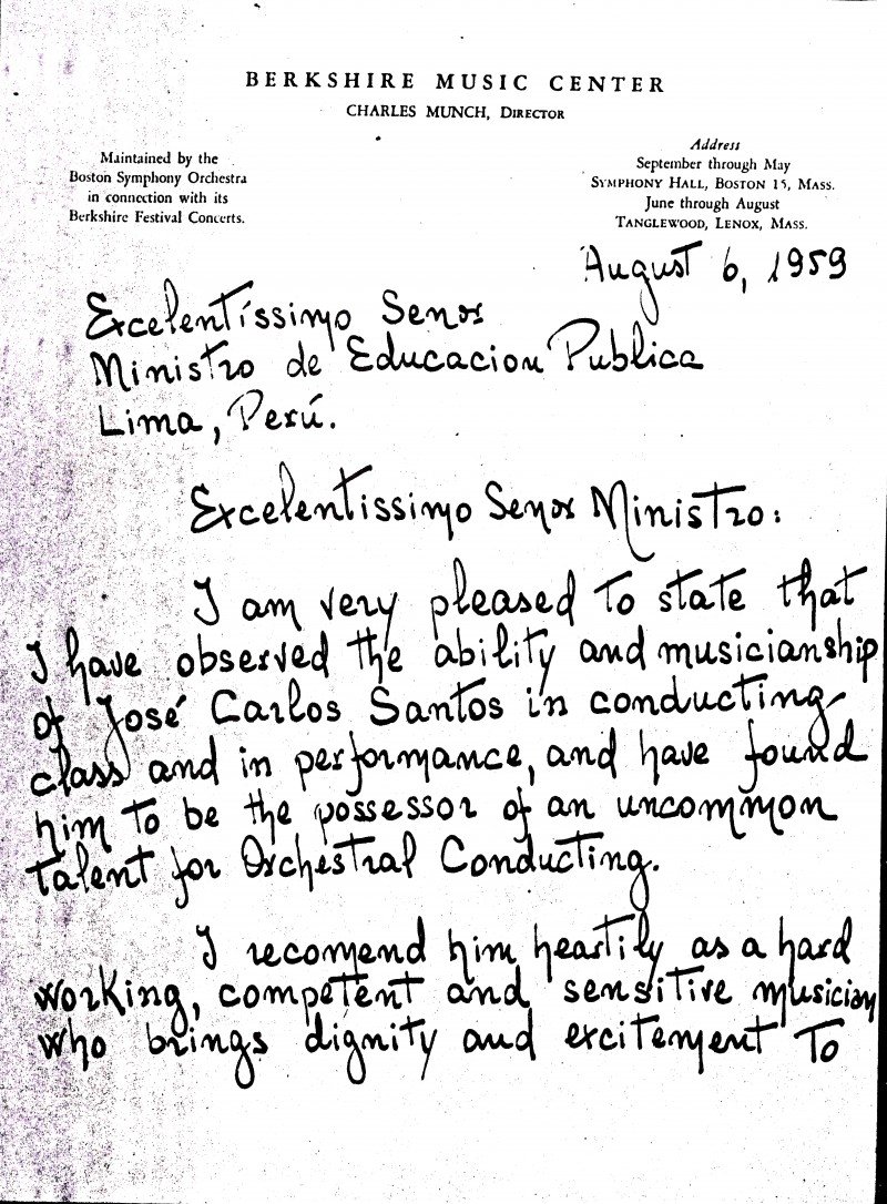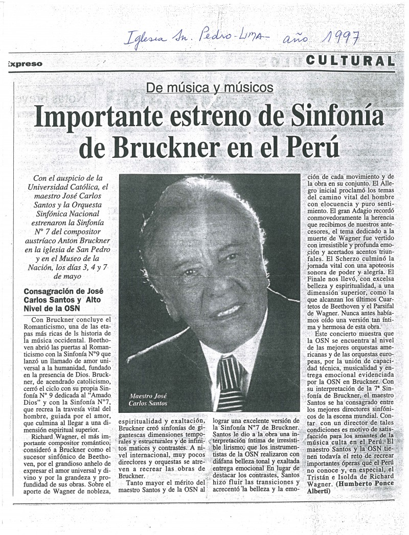 Hace unas semanas dejó de existir una personalidad entrañable y de primer orden, el maestro José Carlos Santos, director en más de una ocasión de la Orquesta Sinfónica Nacional (OSN) y de varias orquestas e instituciones profesionales tanto en Perú como en el extranjero. Se recordarán su expresividad en la dirección, su comunicación con el público, su sentido del humor, y su solidaridad y compromiso con los músicos y las instituciones con las que trabajó, característica que es reconocida por todos, sin excepción. El maestro Santos tuvo una formación musical privilegiada. Luego de realizar estudios en el Conservatorio Nacional de Música de Lima, los prosiguió en Nueva York gracias a una beca de Manhattan School of Music para realizar estudios de dirección de orquesta con los maestros Jonel Perlea y Nicolás Flagello. Una segunda beca le permitió tener estudios con Pierre Monteaux y Eleazar de Carvalho en Berkshire Music Center de Tanglewood. También asistió al Festival Casals de Puerto Rico. Es decir, algunas de las figuras e instituciones más prestigiosas del planeta.