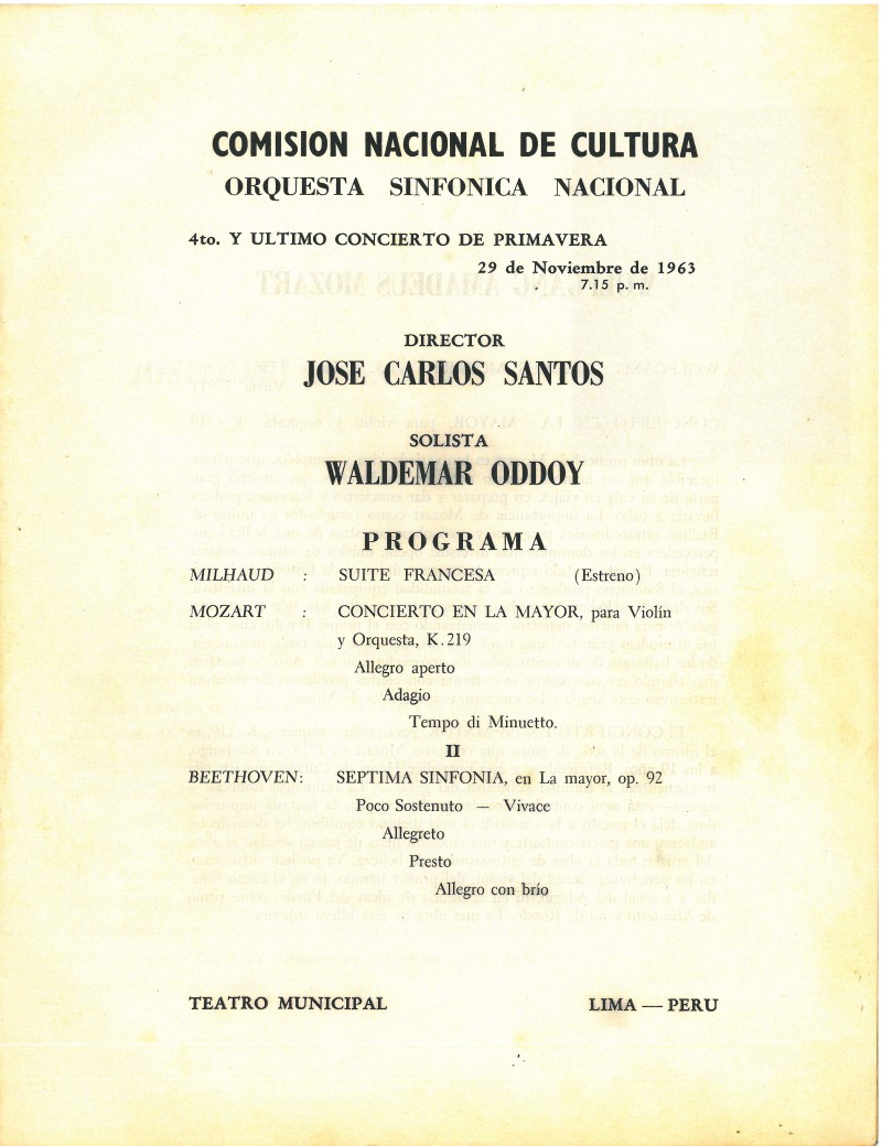| Milhaud, Darius | Suite francesa [estr. en Perú] | 29/11/1963 |