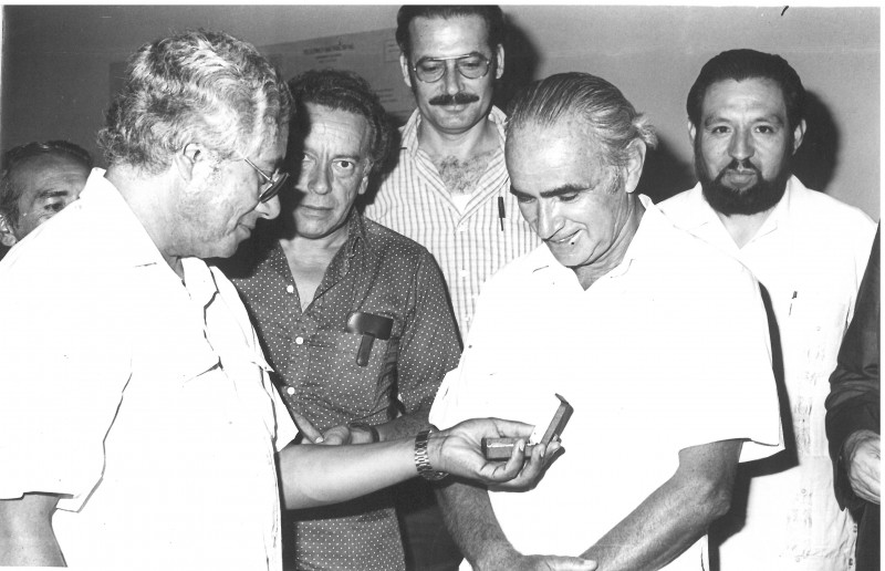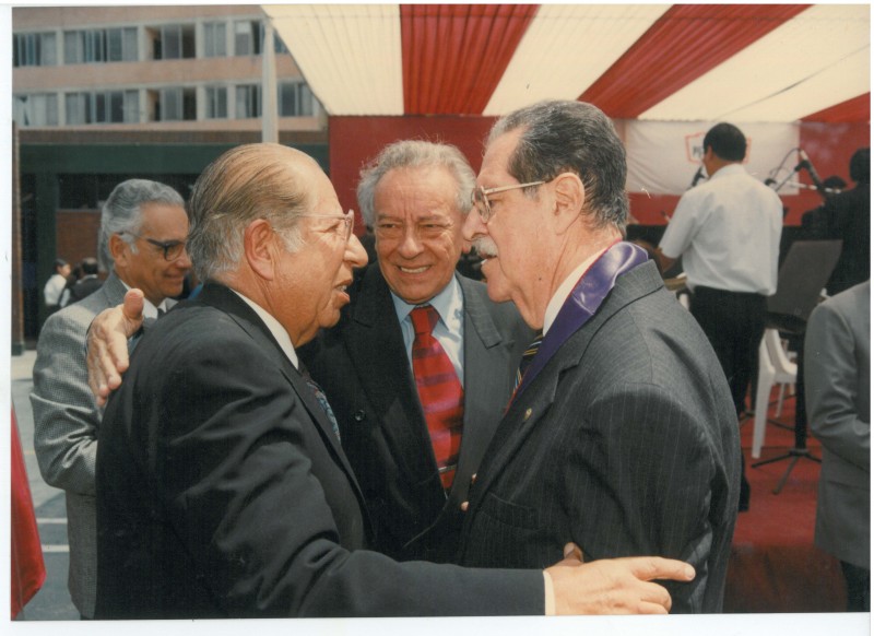 José Carlos Santos (a la izquierda en la foto) junto a otros destacados representantes de la Generación del Cincuenta: Enrique Pinilla (al centro) y Leopoldo La Rosa. [Foto: Cortesía Luis Alvarado]