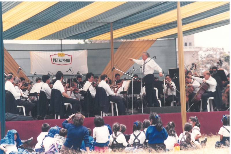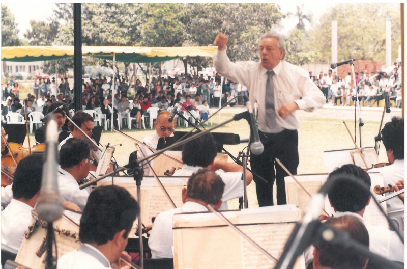 Durante su gestión con la OSN aportó a la difusión del repertorio contemporáneo peruano al programar importantes estrenos como el cuento sinfónico Zorro, zorrito, de Edgar Valcárcel; los conciertos para piano y violín de Francisco Pulgar Vidal; Retablos sinfónicos, de Celso Garrido-Lecca; entre otros. Así mismo, consiguió el instrumental y renovó el material musical con que cuenta la orquesta. En épocas de crisis, mantuvo vivo el espíritu de la música sinfónica y por ello siempre será recordado.
