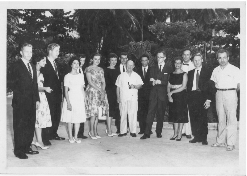 Pau Casals junto a José Carlos Santos (el segundo desde la derecha) y otros asistentes al festival. [Foto: Archivo personal José Carlos Santos]