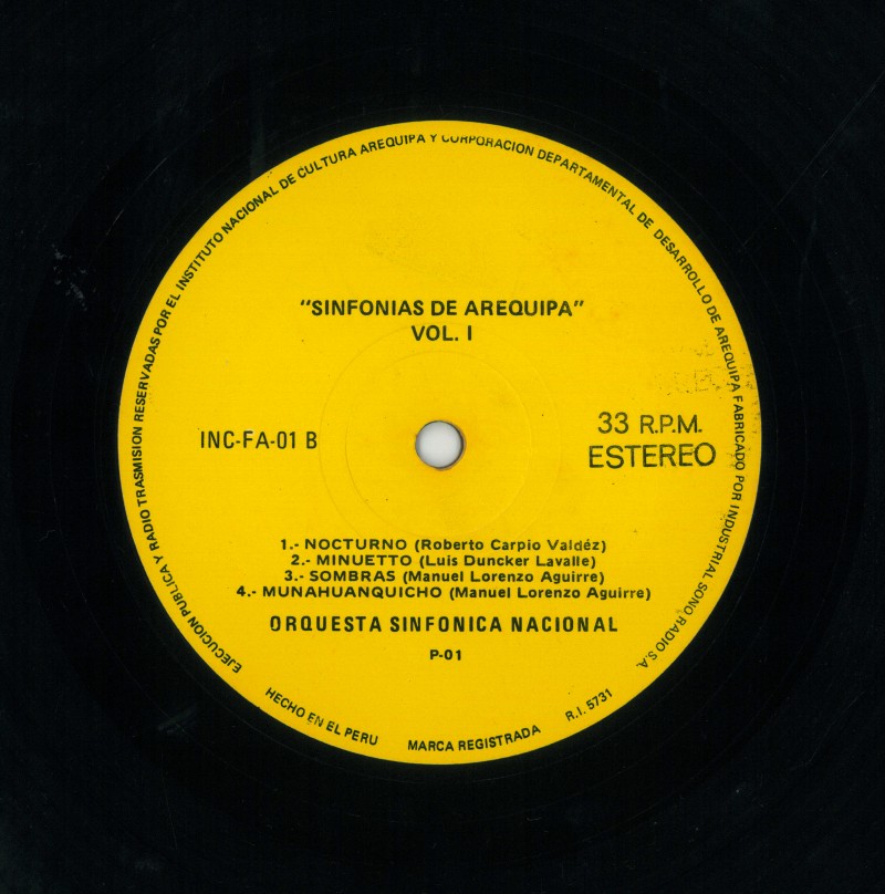 | Perez Acha, Manuel | Vengo de Cachiche, marinera Rapsodias del Pueblo Nro. 1 - I. Idolatría, vals (Oscar Molina) Rapsodias del Pueblo Nro. 2 - I. Las cautivas, vals (D.R.) Rapsodias del Pueblo Nro. 3 - I. Ídolo, vals (Nicanor Casas) | 14/02/1993 |