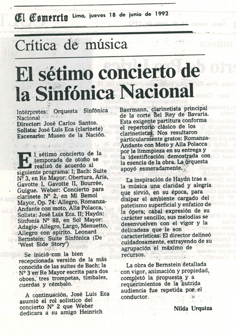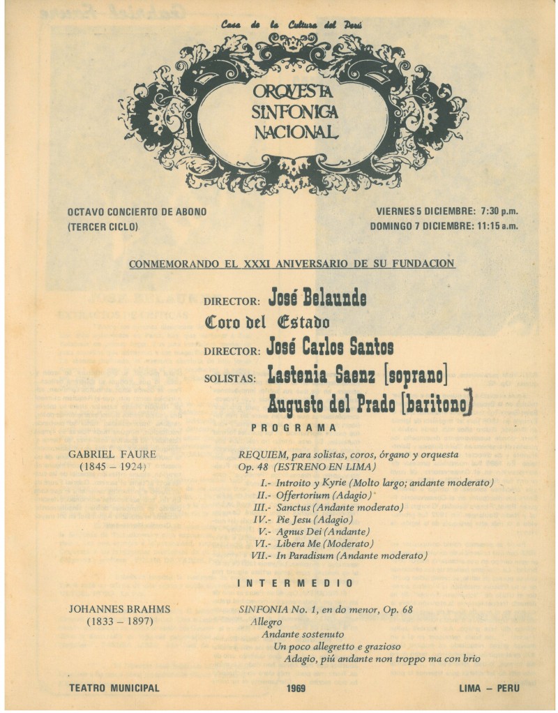 1. Estrenos de la Orquesta Sinfónica Nacional del Perú dirigidos por José Carlos Santos. *)