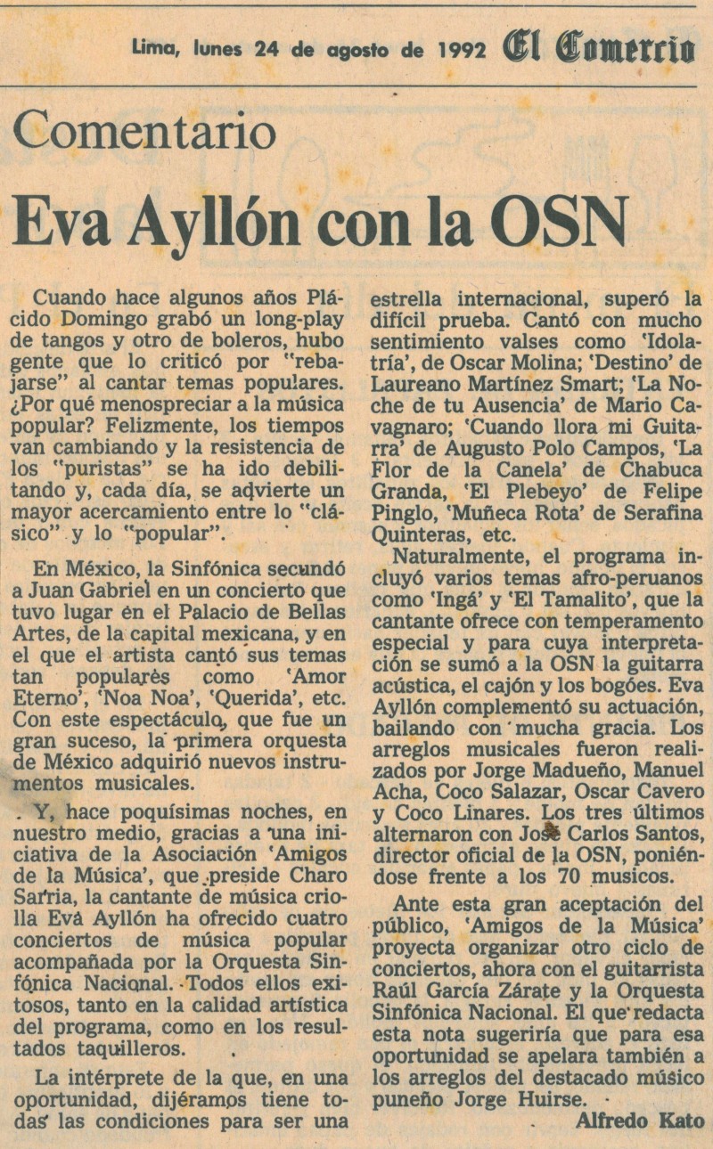 | Mozart, Wolfgang Amadeus | La flauta mágica [en concierto] [estr. en Perú] | 25/08/1992 |