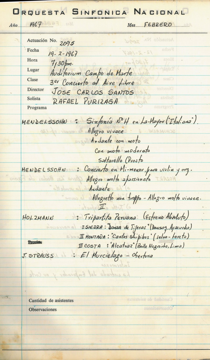 | Holzmann, Rodolfo | Dodedicata Tripartita peruana | 28/10/1966 19/02/1967 |