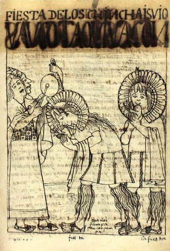 El cronista Gonzalo Pizarro cita que, al llegar la tropa española a Cajamarca -donde el Inca disfrutaba de los famosos baños-, se encontró a cientos de nativos tocando para el regocijo del Inca.