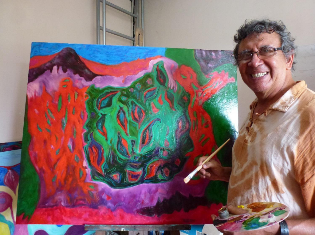 Al cumplir los 60 años, decidió instalarse en la selva peruana de Moyobamba para dedicarse de pleno a las artes: plásticas, musicales y literarias. Autodidacta en dibujo y pintura surge espontáneamente una temática mística y naif, o neo figurativa con influencia amazónica.