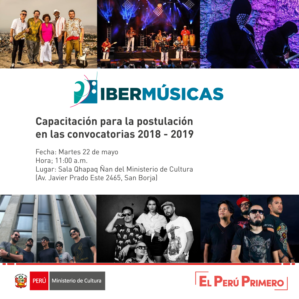 El Ministerio de Cultura, a través de la Dirección de Artes, los invita a la capacitación para la postulación a las Convocatorias IBERMÚSICAS 2018-2019. En este evento se explicarán los objetivos del programa, las líneas de ayuda y concursos existentes; así como, el paso a paso para postular a los mismos.