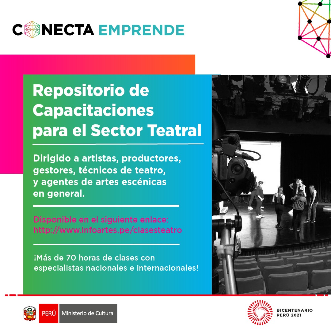 Además, entre los meses de setiembre a diciembre del 2020, se ofrecieron clases virtuales gratuitas en el marco del Programa Conecta.Se brindaron herramientas para la virtualización de contenidos, plataformas de distribución digital, marketing, diseño de proyectos, propiedad intelectual,entre otros; todas las temáticas fueron adecuadas a las necesidades de los artistas en el contexto de la emergencia nacional, y estuvieron a cargo de especialistas en los diversos temas en mención. Estas clases quedaron grabadas en la página de Facebook de dicho canal web.