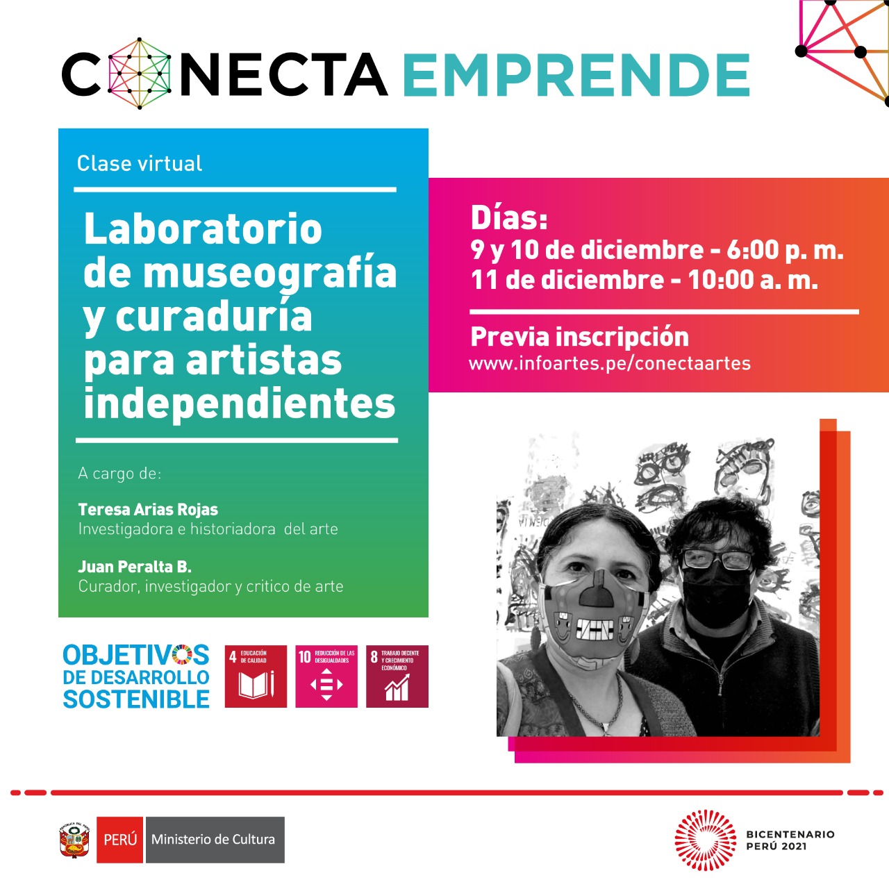 En el mes de diciembre, la Dirección de Artes del Ministerio de Cultura, en el marco de la iniciativa CONECTA, pone a disposición un nuevo ciclo de clases dirigidas a artistas independientes, colectivos y organizaciones a nivel nacional para fortalecer sus capacidades y emprendimientos culturales.