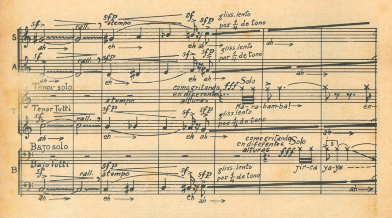 Ciertamente en donde debe haber logrado un mayor acercamiento a esa idea es en la Sinfonía Nasca. Él investigó mucho las antaras Nasca, siguiendo un estudio que había hecho hace muchísimos años Andrés Sas –quien fue su maestro-, y una investigación más reciente realizada por César Bolaños. Decía por ejemplo, bromeando, que “los Nasca inventaron el modo del Boogie-Woogie”. Estaba fascinado con eso, con la semejanza con ciertas cosas modernas de lo que podemos imaginarnos que pudo ser la música Nasca. Sin embargo ceo que él se va alejando de ese “folklore imaginario” conforme se fue marcando su afecto estético por Vallejo. En la Sinfonía Nasca ya ha superado el “folklore imaginario”. Me gustaría en algún momento comparar la evolución de su lenguaje con Ginastera, que de un folklore objetivo (en su primera manera) pasó a un folklore subjetivo (segunda manera) y posteriormente a un lenguaje de síntesis neo- expresionista (tercera manera).