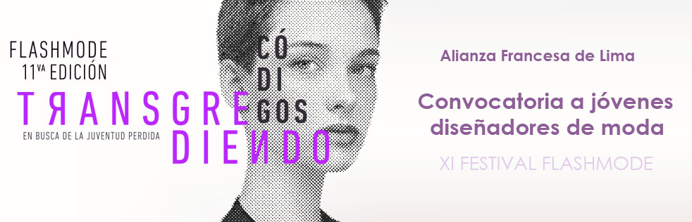 El festival FLASHMODE, uno de los eventos de moda más trascendentes del medio, lleva a cabo la importante misión de promover y posicionar la creatividad de los nuevos diseñadores de moda del Perú. Siendo una de las principales plataformas de exposición para los nóveles talentos. De esta manera, la Alianza Francesa de Lima convoca a todos aquellos diseñadores, entre los 19 y 35 años, a presentar sus propuestas en relación al tema “Transgrediendo códigos (En búsqueda de la juventud perdida)”. Los interesados, ya sean diseñadores con formación académica o autodidactas, deben presentar dos ejemplares de la carpeta o folder de colección, la misma que debe incluir tanto prendas como accesorios que acompañarán la tenida.