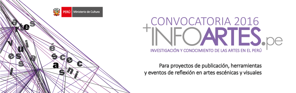 El Ministerio de Cultura convoca a organizaciones de la sociedad civil, entidades educativas, gestores culturales, artistas e investigadores peruanos a participar de la convocatoria INFOARTES 2016 que busca apoyar y visibilizar iniciativas que trabajan en la generación de información y conocimiento que contribuye al reconocimiento de las artes, de los trabajadores de las artes y de la formación artística en el Perú.