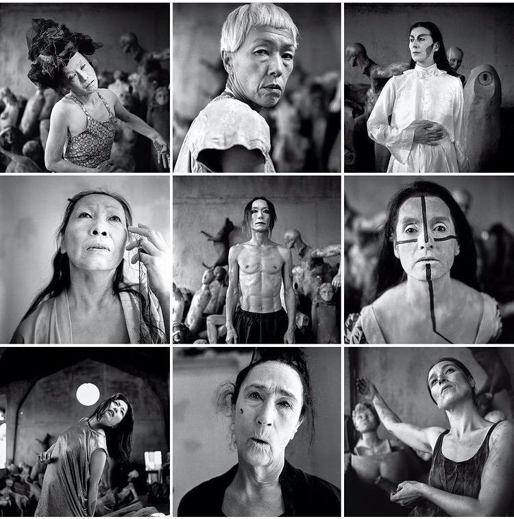 Makiko Tominaga (Japón) – Yuko Kaseki (Japón) – Vangeline (Francia-USA) Linea central de Kaoru Okumura (Japón)-Colectivo Daipan – Ken Mai (Japón) – Eugenia Vargas (Mexico) – Kae Ishimoto (Japón) – Joan Laage (USA)-Colectivo Daipan – Tove-Elena Nicolaysen (Noruega). Créditos: Hugo Angel @hangel71 Fotografías retratos del Festival internacional Butoh – FIBUTOH 2018 (Santiago, Chile).