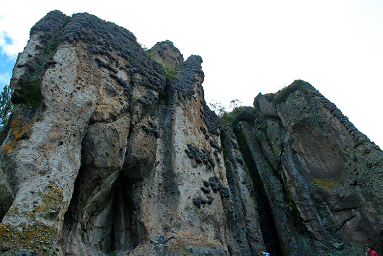 La foto N°5 de título "Caminando por los monjes de roca", en esta foto esta mi esposo, representando a todos los turísticas que realizando trekking recorren todo el camino de formaciones rocosas, como se aprecia hay abundante vegetación, en el camino los turíaticas encuentran comidas como chicharrones, tamales, humitas, algunas paisanas vendiendo unos cinturones tejidos por ellos mismos, y por supuesto algunas niñas vendiendo agua