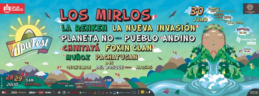 Este año, Apufest se realiza con el apoyo del Gobierno Municipal del Cusco a través de su Gerencia de Medio Ambiente, la Dirección Desconcentrada de Cultura de Cusco y marcas nacionales que apuestan por la música y el arte.
