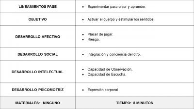 Momento N° 3: No hay barrera. Todos repiten la dinámica pero en vez de caminar podrán probar diversos desplazamientos: saltando, bailando, etc.