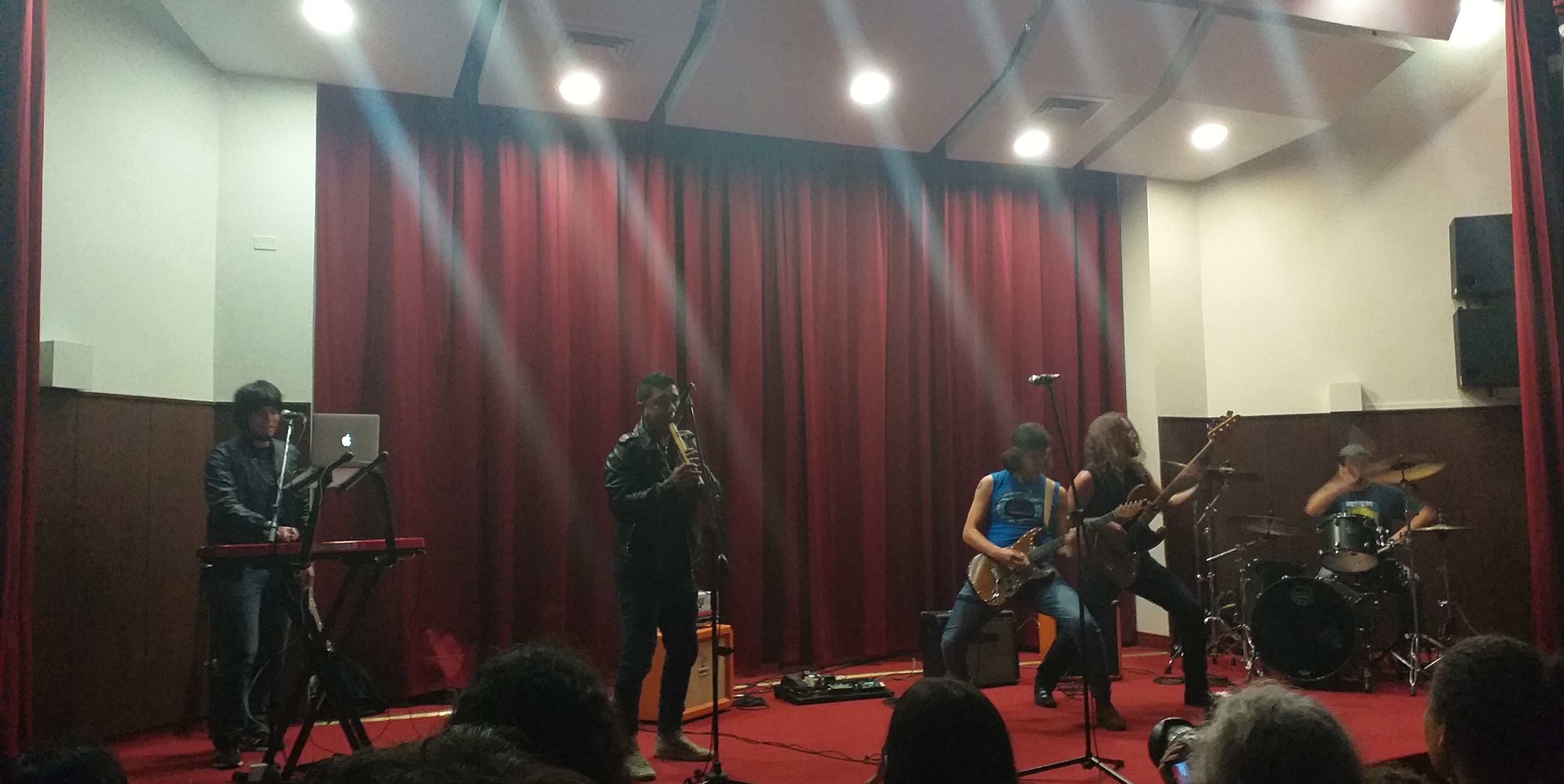 Fig. 1: “Presentación de Flor de Loto en el conversatorio ‘El metal como movimiento y crítica social’”. Imagen de Lucía Gómez, 2 de abril del 2018.
