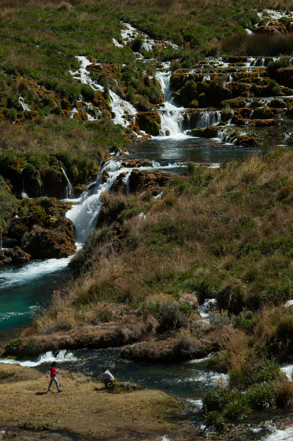 Foto 1. Muestra del origen de las formas de delimitación y construcción humanas. (2015). Lugar: Entre Laraos y Tanta. El hombre signa el suelo, construye un lenguaje de formas comprendidas por los materiales que lo rodean. Reseña: (Primer plano general) Un árbol a la intemperie, circundado por una marisma de piedras. (tercer plano) Una montaña es el principio de lo majestuoso en el hombre. | | Foto 2. La vivienda humana. (2015) Lugar: Tómas. Con el tiempo los materiales cambian, los sistemas se complican. Hay una cierta alquimia en el orden que nos rodea. (Primer Plano) Lavadero del cual dimana el agua que podría bajar de las montañas. Tejados, balcones, ropas, son elementos que relacionan al hombre en con el lugar que habita. (Tercer plano) Cima de montaña | | Foto 3. Paso del agua a través de escalones naturales. (2015) Lugar: Vilca. Reseña: El agua no es silente. En este paisaje mujeres caminan por pequeñas islas formadas debido al flujo del río. | |