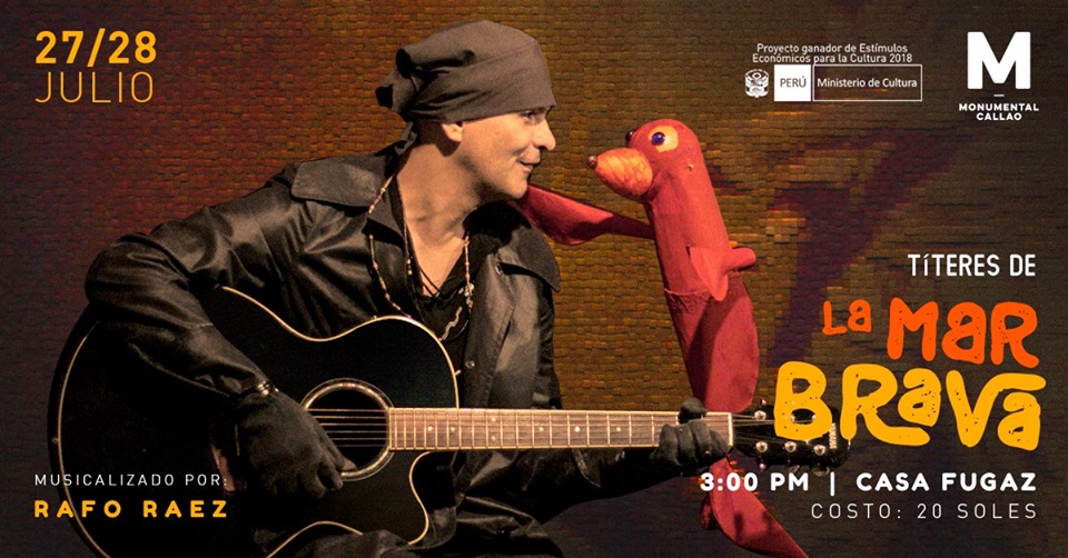 TÍTERES DE LA MAR BRAVA es uno de los proyectos beneficiarios de los Estímulos Económicos para la Cultura 2018 en el Concurso Nacional de Proyectos de Producción de Artes Escénicas, y ha sido realizado por el titiritero Pepito Ron y el músico Rafo Ráez. Se trata de una creación colectiva donde ambos artistas fusionan sus talentos para crear esta obra del teatro de títeres musicalizada.