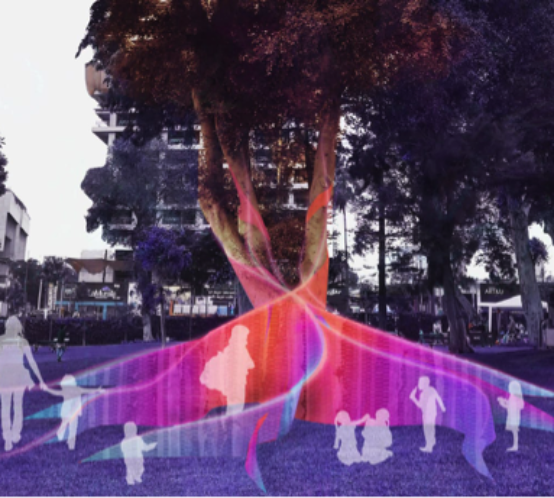 Instalaciones del Habla tiene como objetivo el desarrollo de proyectos artísticos que involucran a los estudiantes en prácticas de investigación y participación de causas sociales. La propuesta transforma el parque en el interior del museo y le da un nuevo significado a partir de la intervención del espacio con el uso de herramientas como la luz, el sonido, planos reales y virtuales, etc. Todo esto resulta en una enriquecedora experiencia estética y sensorial.