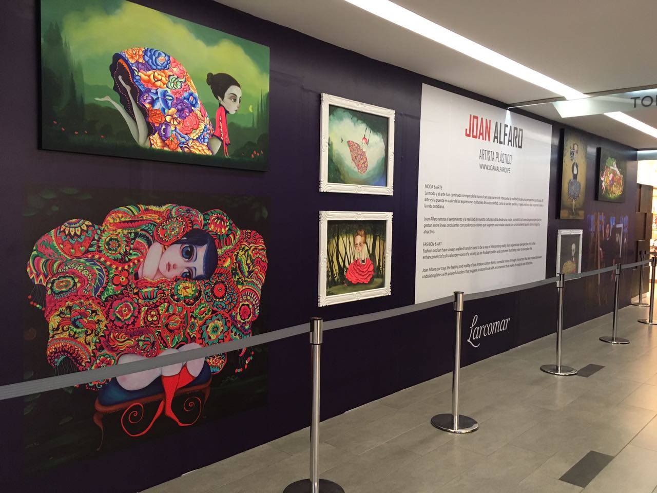 A primera impresión, el arte de Joan Alfaro resalta por un estallido de colores. Esta explosión está presente en cada uno de sus personajes; en su mayoría, mujeres de ojos expresivos que lucen vestidos de fino acabado con características andinas. Su estilo, al que se ha denominado como “surrealismo andino”, formó parte de la última edición del Perú Moda 2017, y seguirá en exhibición entre el 15 de abril y 15 de mayo en Larcomar.