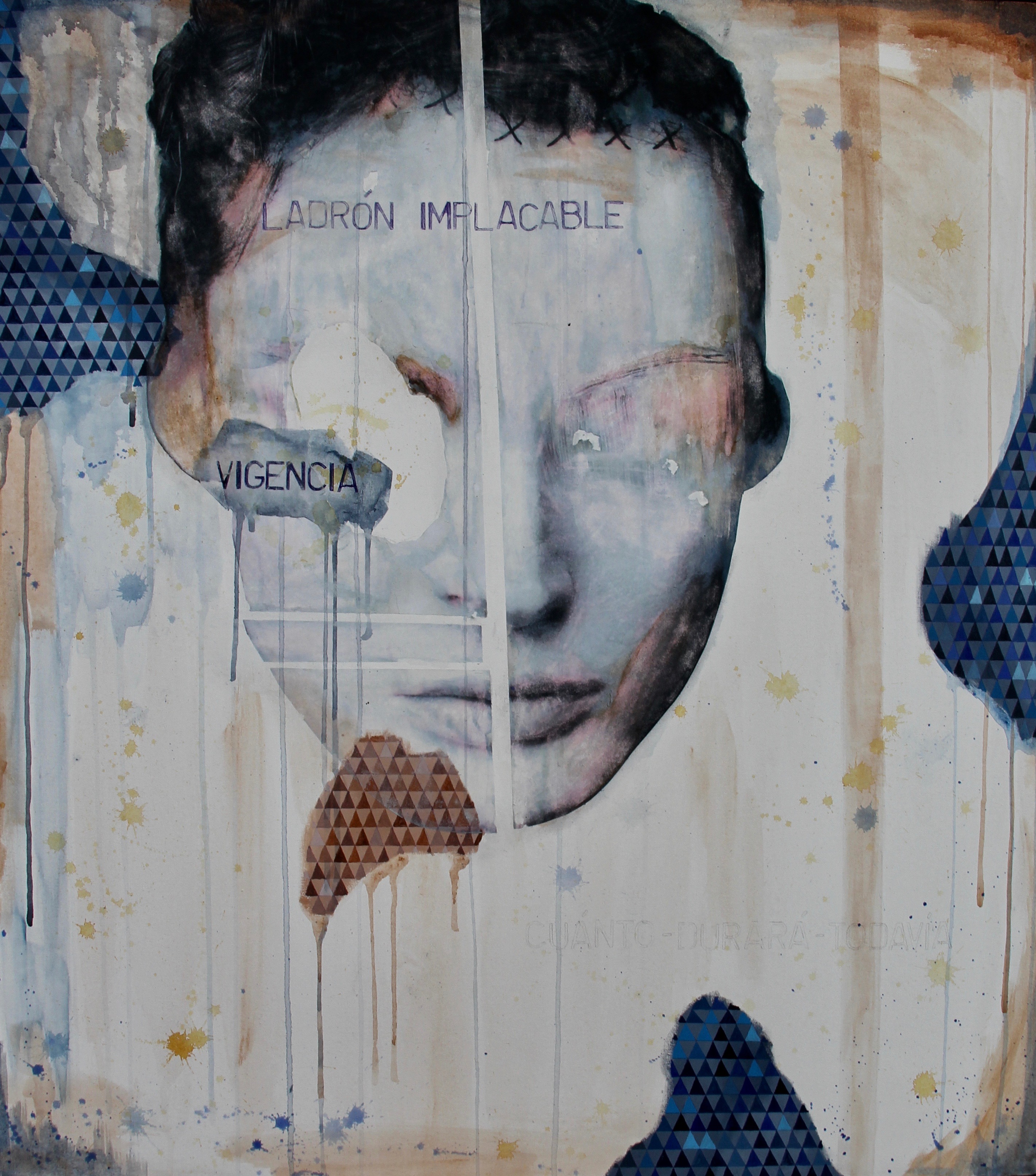 “Aisha Ascóniga presenta La Agonía del Tiempo con una mirada crítica, directa y determinante, sumergida en sus propias vivencias como mujer occidental. La representación de una vitrina de lo ideal, de lo esperado, sin tregua al margen de error se ve irrumpida por un vandalismo sutil que busca como escapar, como pretenderla, como dañarla, como atravesarla. La ruptura es quizás la cólera hacia la perfección, en donde los elementos textuales y fisuras irrumpen la vanidad, la complicidad y la hierática sumisión del cuerpo femenino en los medios de comunicación”, finaliza el curador Gerardo Chávez-Maza sobre la obra de la artista.