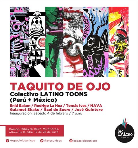 Este sábado 4 de febrero a las 7 p.m. se inaugura la primera exposición del año en Espacio Los Únicos: Taquito de ojo:: Colectivo Latino TOONS (Perú + México)