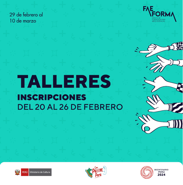 El Festival de Artes Escénicas de Lima 2024, presentado por el Ministerio de Cultura del Perú, lanza en el marco de FAE FORMA, la convocatoria para los talleres y clases maestras de danza, gestión cultural, vídeo en escena e improvisación, dictados por especialistas, miembros de las compañías internacionales invitadas en esta edición.