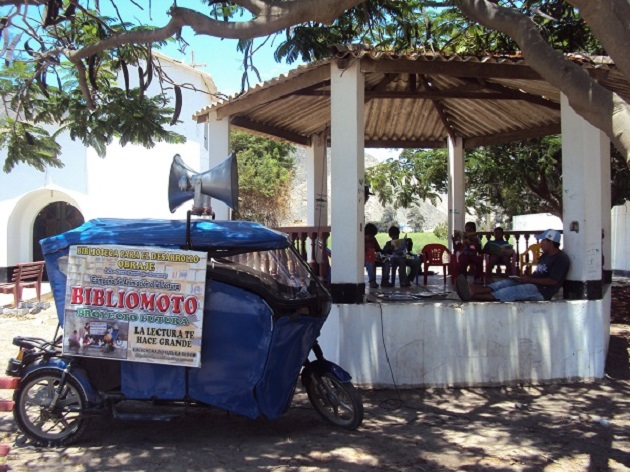 Heber Ocaña veía que en Madrid existían los bibliobuses y mientras limpiaba los parques, soñaba con montar uno parecido, pero con el transporte más popular de su país, las mototaxis, entonces pensó en la "BIBLIOMOTO".