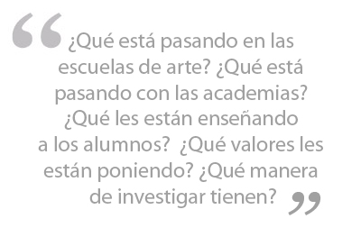 Mario explica que la decadencia del arte crítico se debe analizar en diferentes niveles, uno de ellos es el nivel educativo. Nos invita a preguntarnos: “¿Qué está pasando en las escuelas de arte? ¿Qué está pasando con la academia? ¿Qué les están enseñando a los alumnos? ¿Qué valores les están imponiendo? ¿Qué manera de investigar tienen?” Él nos cuenta que desde su experiencia propia él ha evidenciado como fotógrafos obtienen un título sólo después de haber estudiado un año, y que estos carecen de conocimiento histórico como técnico sobre su práctica fotográfica y relegan este trabajo ya sea al curador o editor de sus obras. El recuerda la investigación de Juan Acha, quién concluyó que para que un artista pueda llegar a proponer algo sólido, éste debería haber pintado al menos 200 cuadros, que “significa 10 años de trabajo, probablemente” Es decir, cifra inalcanzable con tan sólo un año de estudios.