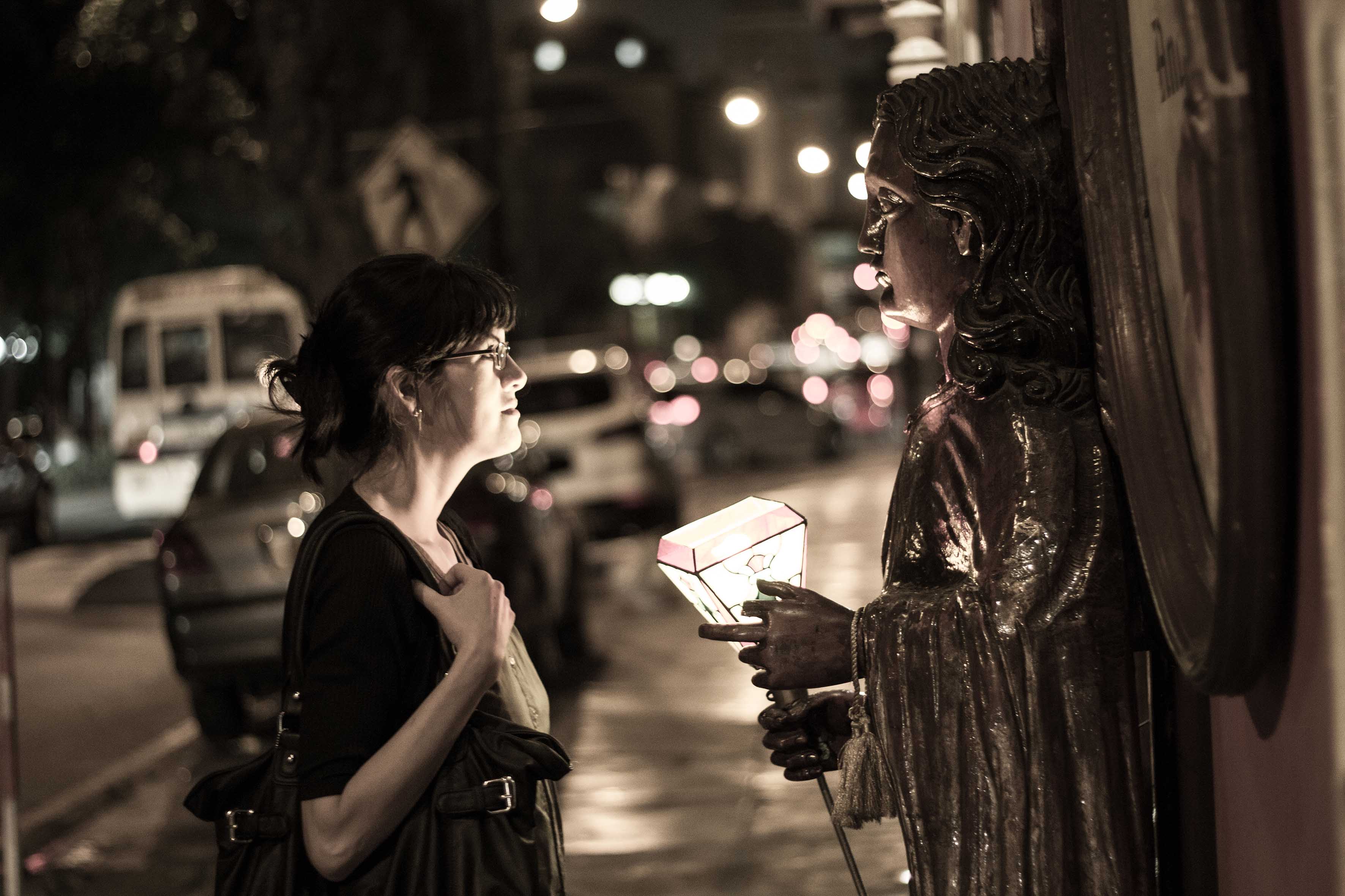 "LA ESQUINA" (2015) Foto tomada en la esquina de mi casa, distrito de Lince. Plano medio de los artistas de las calles, mirando la cámara para toma | | "MI-MO" (2012) Foto tomada en un viaje a Francia caminando por el muelle en Cannes. Un primer primerísimo plano de un mimo haciendo su arte en las calles, queriendo capturar su mirada y la intensidad que transmite | | "MIRADAS" (2015) Foto tomada en una calle principal del distrito de Barranco en Lima. Un plano medio de la mirada de una chica a la estatua en la pared | |