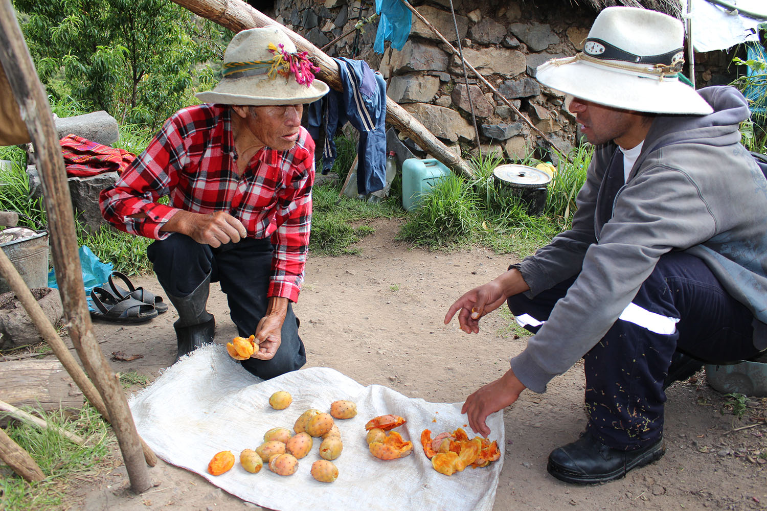 Almuerzo Familiar. 26/04/2014 Autor: Sandy Guzmán Lugar: Comunidad de Antapunco, Distrito de Haquira – Apurimac. Almuerzo Familiar, todo la familia reunida celebrando la llegada de los visitantes compartiendo el plato típico del lugar Charqui con papa. Se muestra una toma de plano general a lo profundo se aprecia un paisaje lindo. | | Con mi Pollerita Roja. 26/04/2014. Autor: Sandy Guzmán Lugar: Comunidad de Antapunco, Distrito de Haquira – Apurimac. Soledad con su Pollerita rojo su traje de gala, claro sin descuidar a su pequeño hermano Mijael a quien ella cuida. Una toma de primer plano. | | Te Invito Tuna. 25/04/2014. Autor: Sandy Guzmán Lugar: Comunidad de LLachua, Distrito de Haquira – Apurimac. Don Apu que recibe a su visita con poco de tuna fresca, en la fotografía se ve a los personajes en un primer plano. | |