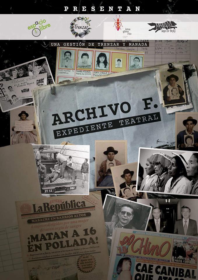 [Nota de prensa] “Archivo F: expediente teatral” es un viaje por la memoria del Perú y nace a partir de una necesidad de denuncia. Tras el indulto a Alberto Fujimori y toda la coyuntura política que está viviendo nuestro país, Trenzar y Manada Teatro se unen para realizar la gestión de este proyecto y buscan crear una alianza entre colectivos teatrales que impulsan la construcción de la memoria en el Perú desde las tablas: EspacioLibre, Imaginario Colectivo, Trenzar y Manada Teatro. De esta manera, lograr juntarse, unir fuerzas, alzar la voz y visibilizar desde el teatro. Vivirás este viaje al pasado/presente a través de cuatro archivos teatrales de 15 minutos cada uno, donde se expondrá delitos, testimonios, silencios, y ficciones desde cuatro diversos lenguajes.