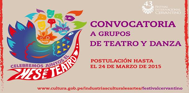 En el marco de las celebraciones por el mes del Teatro, el Ministerio de Cultura, a través de la Dirección General de Industrias Culturales y Artes, anuncia la convocatoria abierta a grupos profesionales de teatro y danza para presentarse y participar en el Festival Internacional Cervantino (FIC) que se realizará en México. Con el objetivo de impulsar la, promoción, estimular la creación y promover espacios de encuentro e intercambio de los artistas escénicos nacionales.