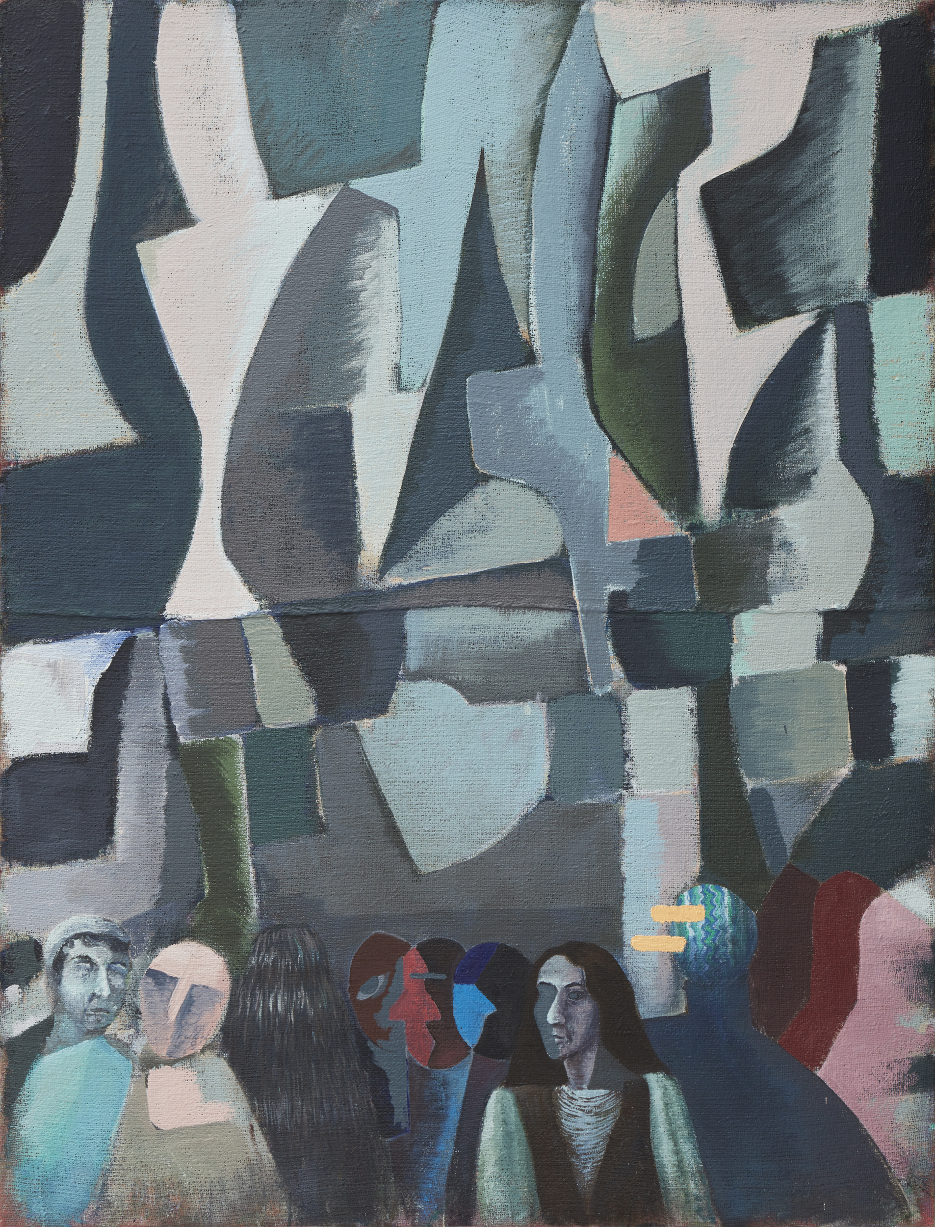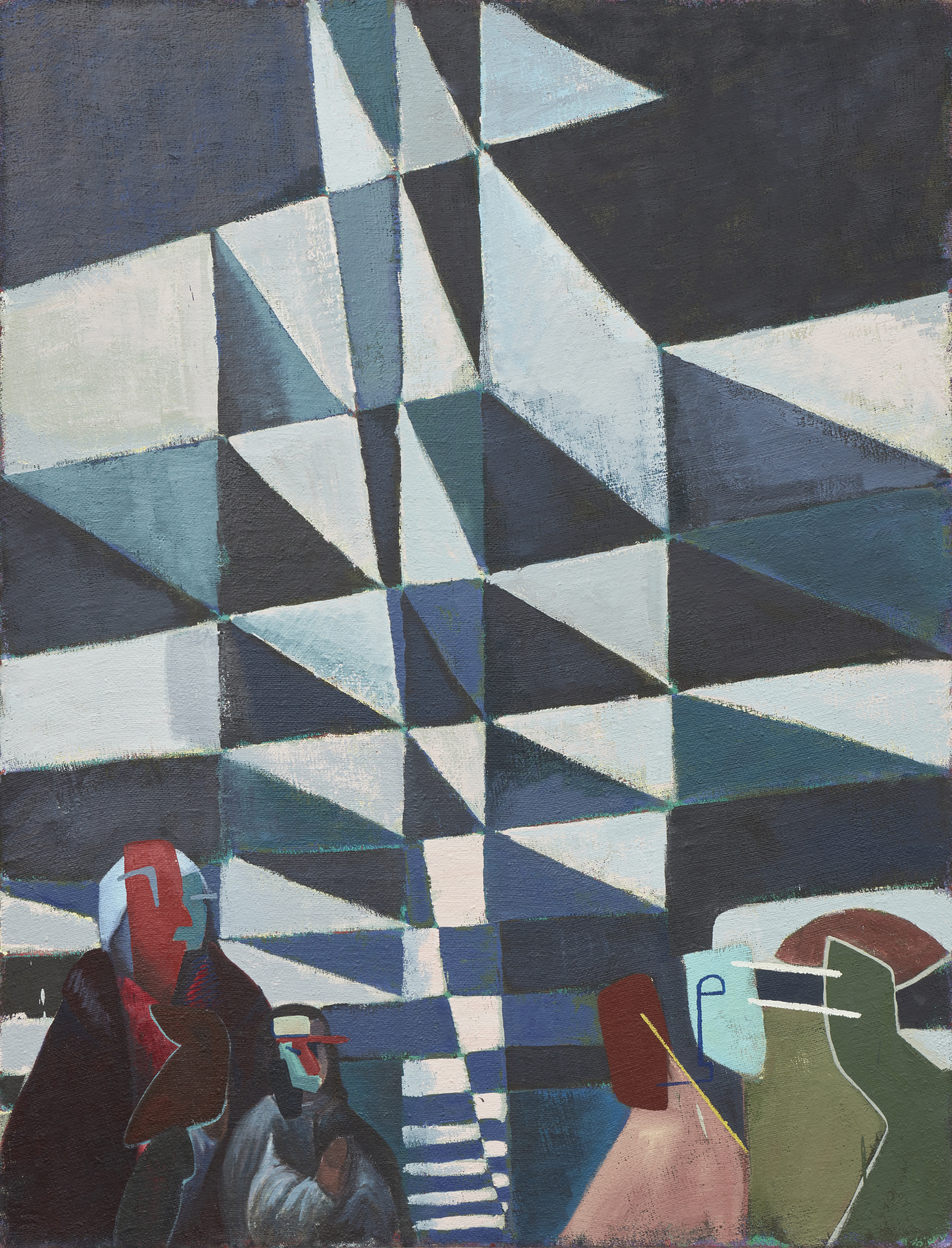 En contrapunto con el referente vanguardista, la composición de la pintura proviene de cuadros cusqueños del siglo XVII: la serie de Corpus Christi de la colección del Museo Arzobispal del Cusco y de una colección privada en Chile. En dicha serie, en un primer plano, la sociedad atiende el paso de una procesión. En la obra de Iosu, los espectadores toman formas abstractas y aluden a un paisaje modernista que cambia ante sus ojos. La exposición, por tanto, combina estrategias históricas para mostrar a un público que vislumbra una nueva era, que fantasea sobre el momento por venir, pero que deja también libre la interpretación de lo que ese futuro significa.