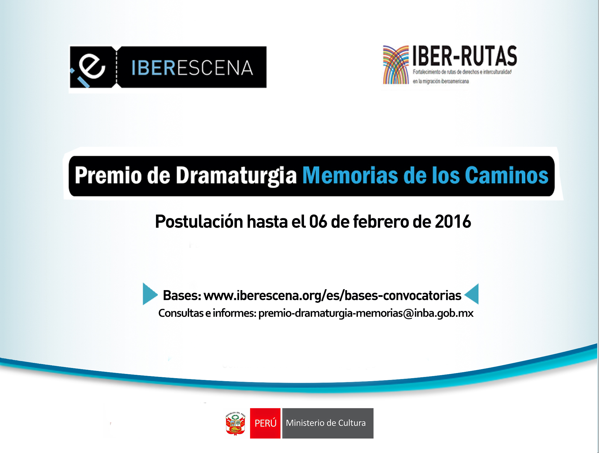 Convocan el Fondo de Ayudas para las Artes Escénicas Iberoamericanas IBERESCENA y el Programa IBER-RUTAS "Fortalecimiento de rutas de derechos e interculturalidad en la migración iberoamericana”. Ambos programas reciben el aporte económico del Ministerio de Cultura para que creadores peruanos puedan postular a sus convocatorias.