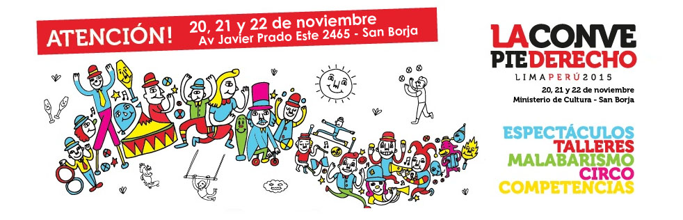 La Primera Convención de Malabarismo y Circo organizado por Pie Derecho se realizará este fin de semana todo el día en las instalaciones del Ministerio de Cultura de San Borja. Es una plataforma-espacio de aprendizaje e intercambio con otros artistas para aprender y enseñar, y principalmente para divertirnos, jugar, aprender, enseñar, compartir, imaginar, crear, romper barreras, cruzar fronteras. La convención es un sueño que involucra a todos y donde todos son bienvenidos.