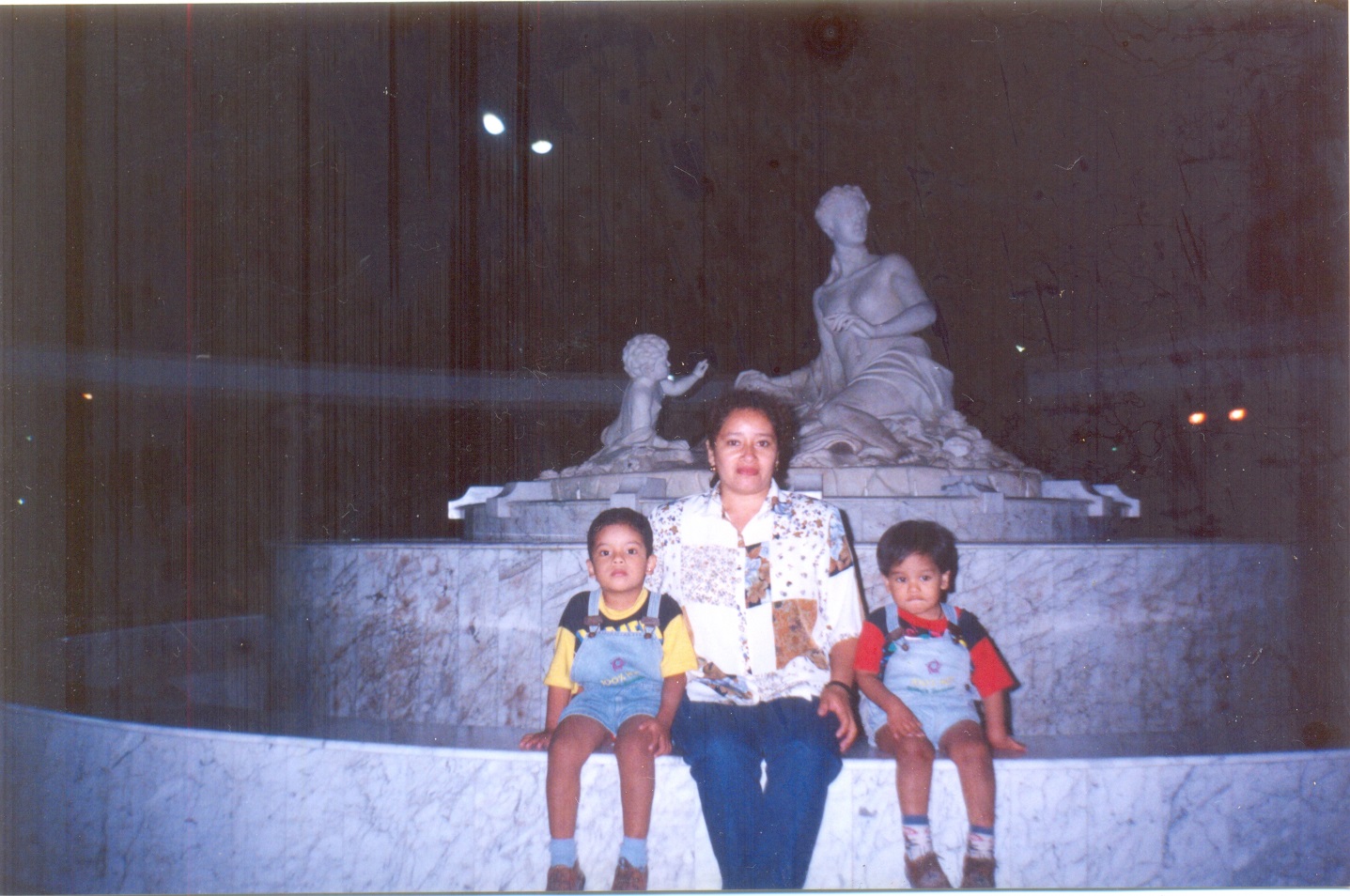 Foto 1. Nosotros. (1996). En Paseo de las Musas, Chiclayo. Fotógrafa: Marlene Custodio. Reseña: Plano general, que muestra a mis hijos y Yo, en una noche de paseo por la Ciudad de la amistad, que permitiera despejarnos de la reciente muerte del papá. | | Foto 2. Vivencias ecológicas. (1997). Centro recreacional de Huachipa, Lima. Fotógrafa: Liliana Custodio. Reseña: Plano general, muestra a mis hijos: Danny y Roberto, luego del recorrido por un paraíso de vida animal, acción, calidez humana, amor y aire puro. | | Foto 3. Diversión. (2000). Playa de Puerto Éten, Chiclayo. Fotógrafa: Liliana Custodio: Plano General: La foto muestra la alegría que afloran Danny y Roberto, mis hijos, al jugar en el agua, en la orilla de la Playa. Al fondo grupos de familias visitantes. | |