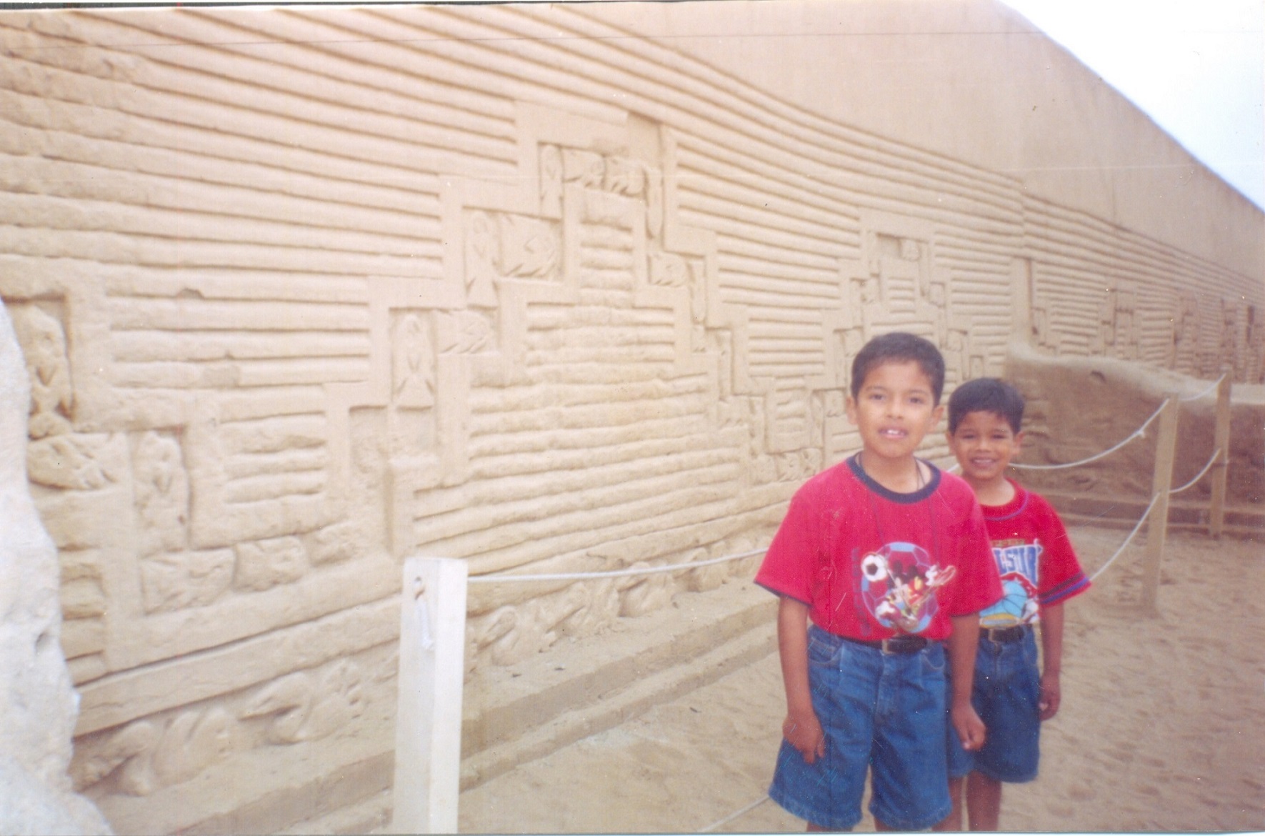 Foto 4. Arqueología del pasado. (2002). Ruinas de Chan Chan, Trujillo. Fotógrafa: Liliana Custodio: Plano Americano, que muestra la felicidad y alegría de mis hijos Danny y Roberto, al conocer las Ruinas. | | Foto 5. Paseo campestre (2003). Jayanca, Lambayeque. Fotógrafa: Liliana Custodio: Plano general, que muestra el encanto en un paseo, en una zona rural, conociendo animales del lugar. | |