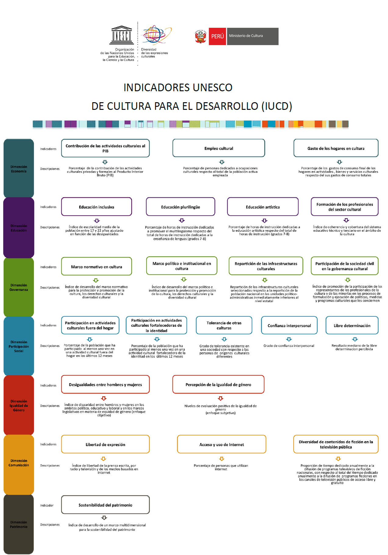 Indicadores de la Cultura para el Desarrollo en el Perú analiza cómo la cultura contribuye en la reducción de la pobreza, amplía las opciones de las personas y favorece la consecución de otros objetivos clave de desarrollo. El proyecto ha sido recibido por la prensa internacional como el estudio del ADN de la Cultura en el Perú.