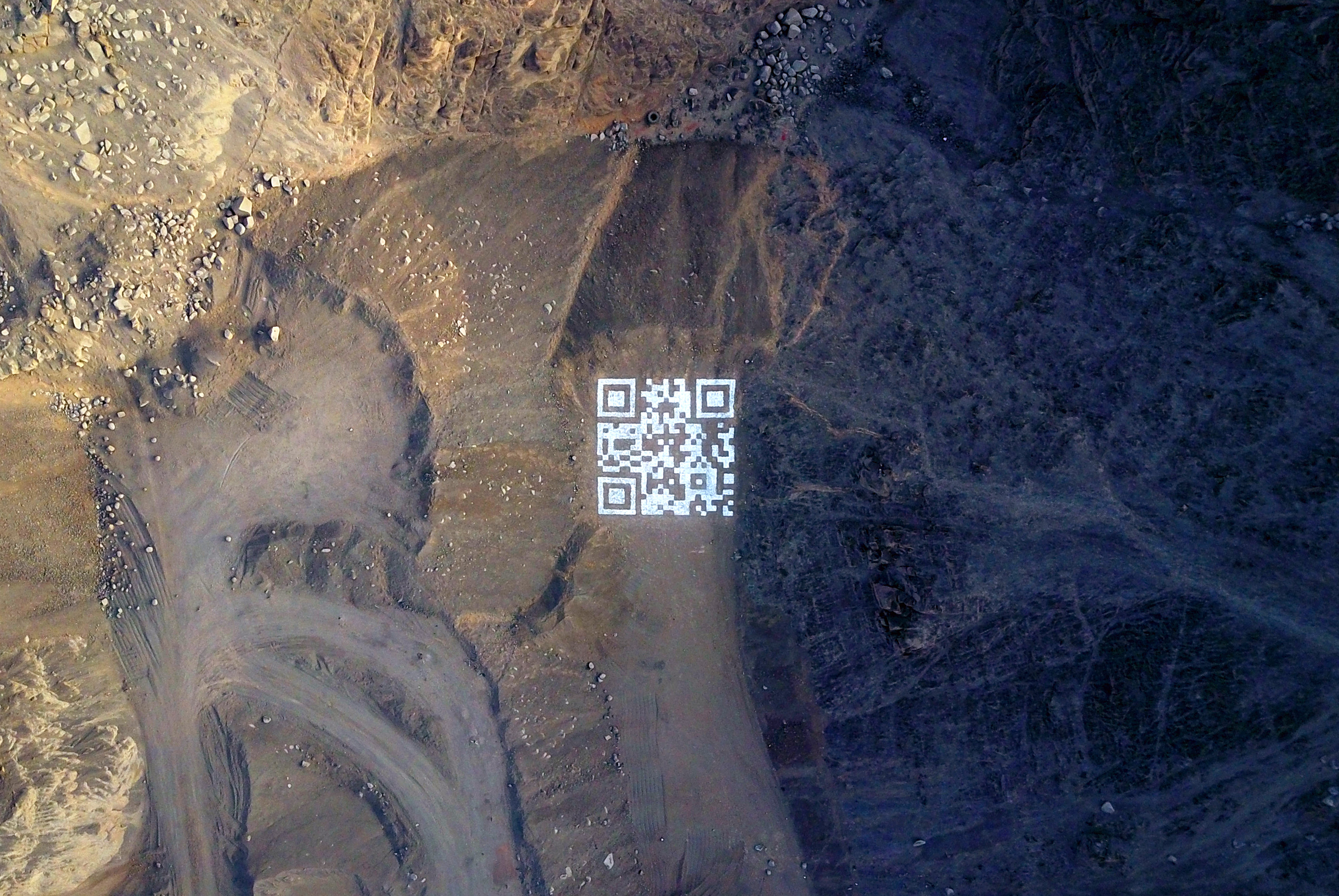 El pasado 18 de julio, se cumplieron veintiséis años del fatídico crimen contra el profesor de pedagogía y los nueves estudiantes de la Universidad Enrique Guzmán y Valle “La Cantuta”. En conmemoración a las víctimas y siguiendo con el desarrollo de su proyecto Memoria QR, a finales de noviembre del 2018, el Grupo Gallinazo llevó a cabo una nueva intervención, esta vez con un código QR simbólico elaborado íntegramente con cal, que mide aproximadamente 15 m por lado. Dicha intervención fue ejecutada en la Quebrada Chavilca-Cieneguilla, lugar donde fueron halladas las cuatro fosas que contenían los restos de las víctimas del caso “La Cantuta”.