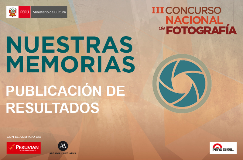 La Dirección de Artes del Ministerio de Cultura felicita a los artistas y a todos los ciudadanos participantes que con su alegría y entusiasmo nos acompañaron en el desarrollo de cada una de las etapas del III Concurso Nacional de Fotografía “Nuestras Memorias” realizado en el marco de las celebraciones por el Mes de la Fotografía en el Perú.