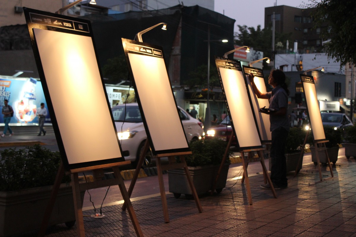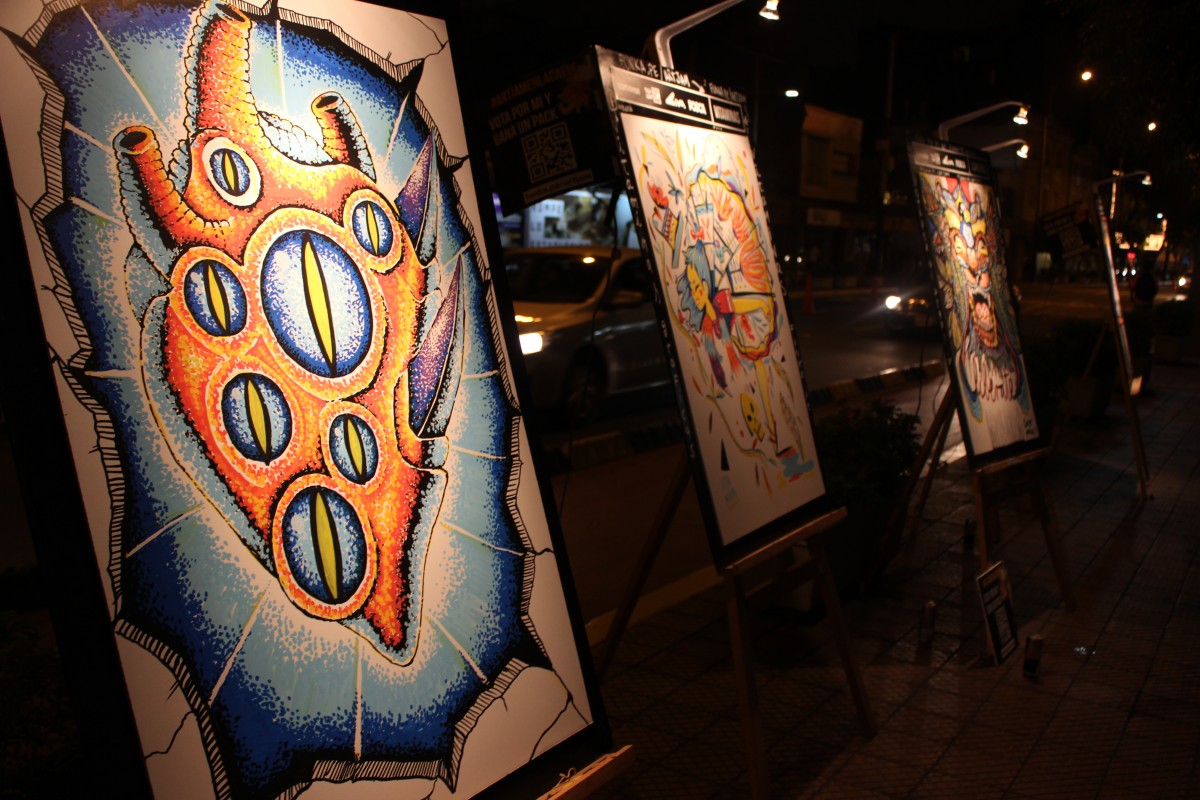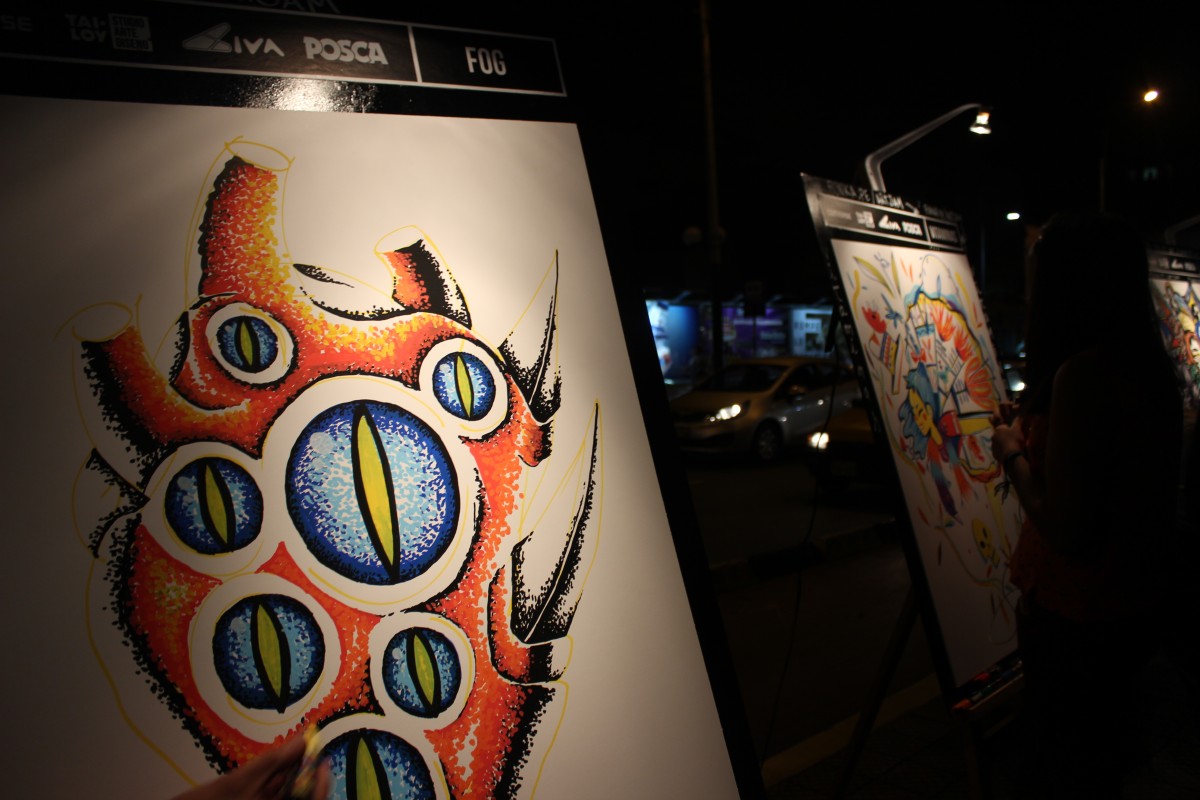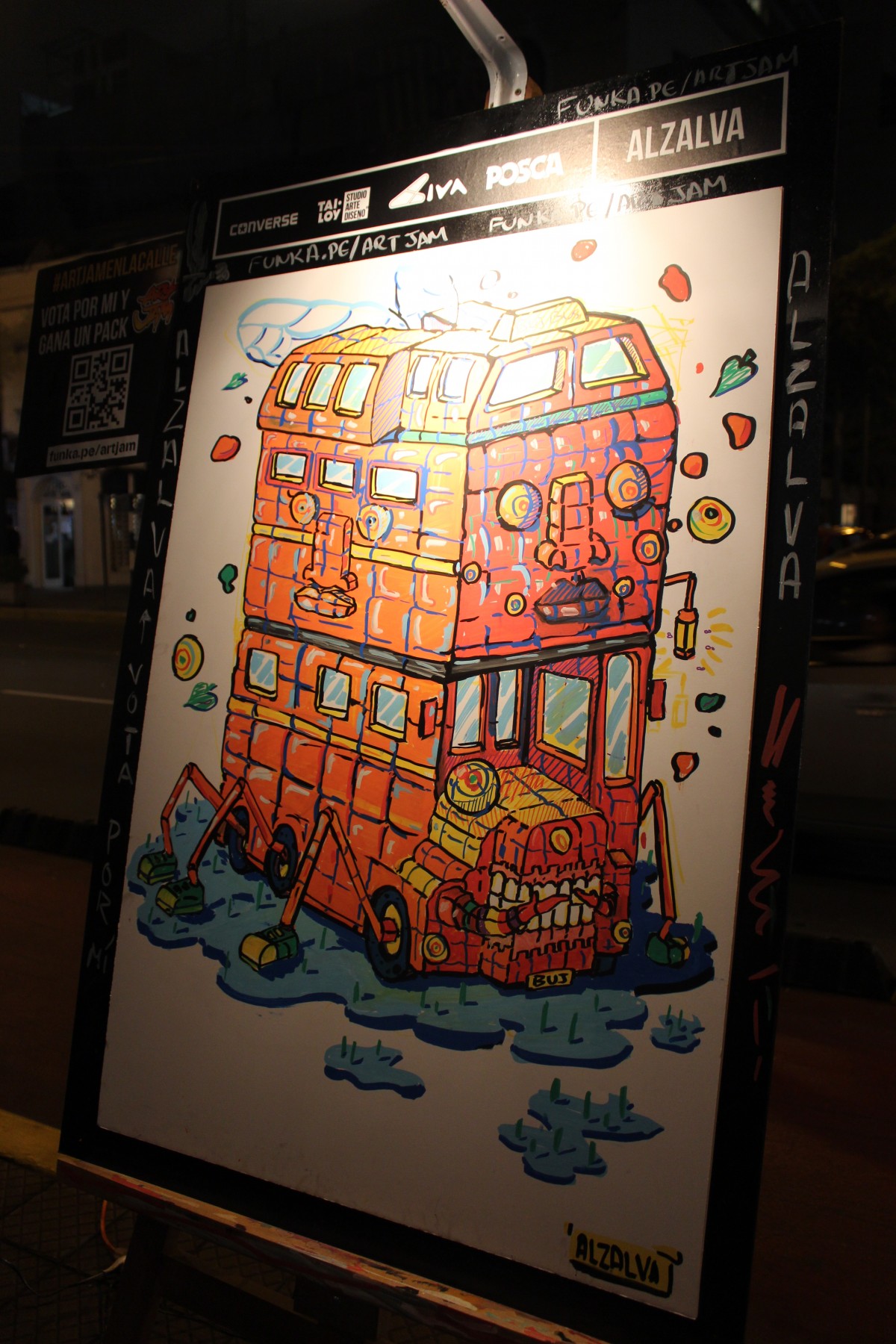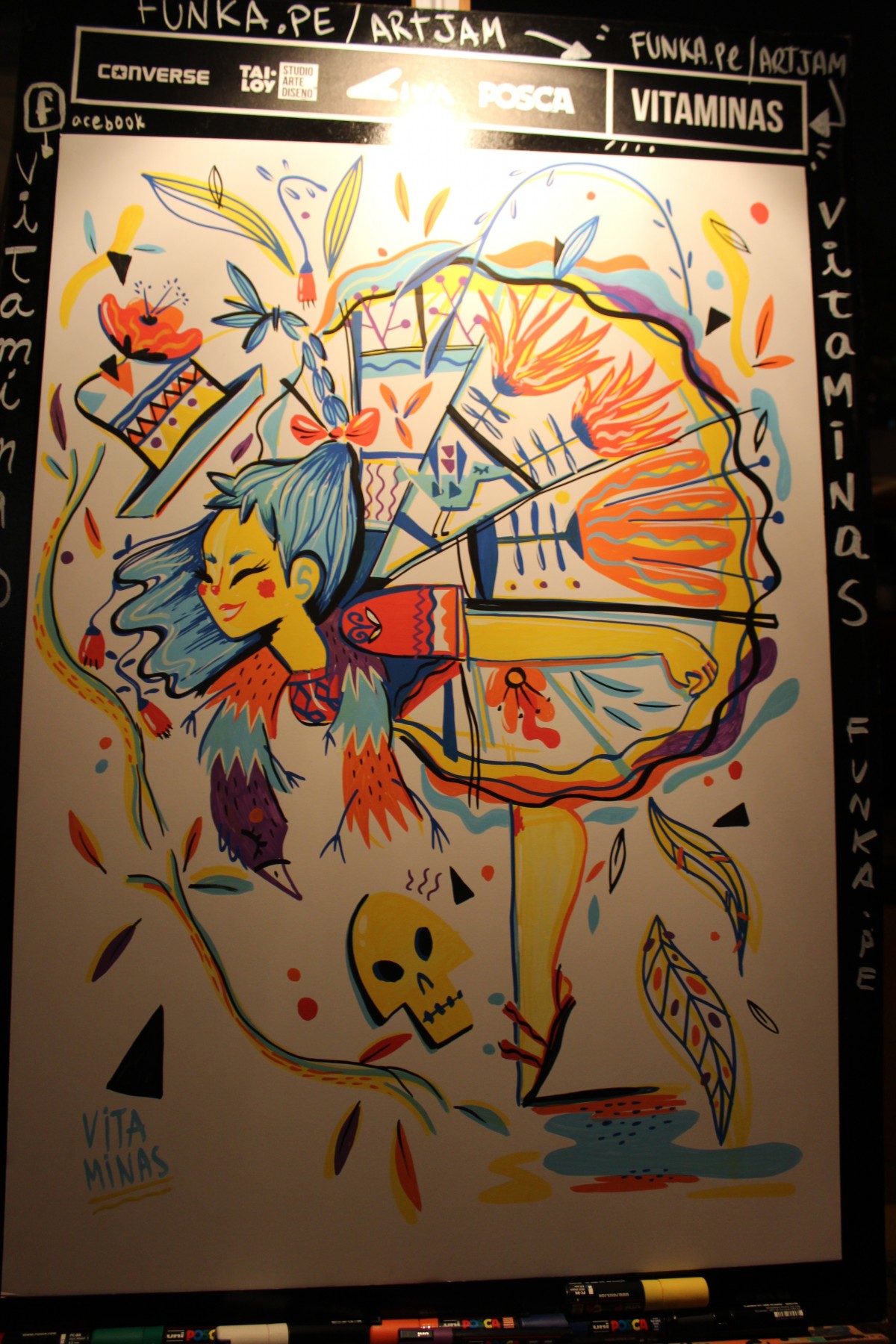 At 5 on Friday, Abril 17, onlookers watched as the sidewalk of outside of CC Ricardo Palma transformed into an art studio. Usually a private space, six urban artists invited all of Lima into their artistic processes. Of course, these urban artists are more accustomed to the street than your average painter, their canvases being construction walls late at night. Art Jam, however, put a spotlight on these stelth artists in order to celebrate them. Friends, family, art fiends, and curious foreigners all gathered around to watch the spectacle take place in front of them.