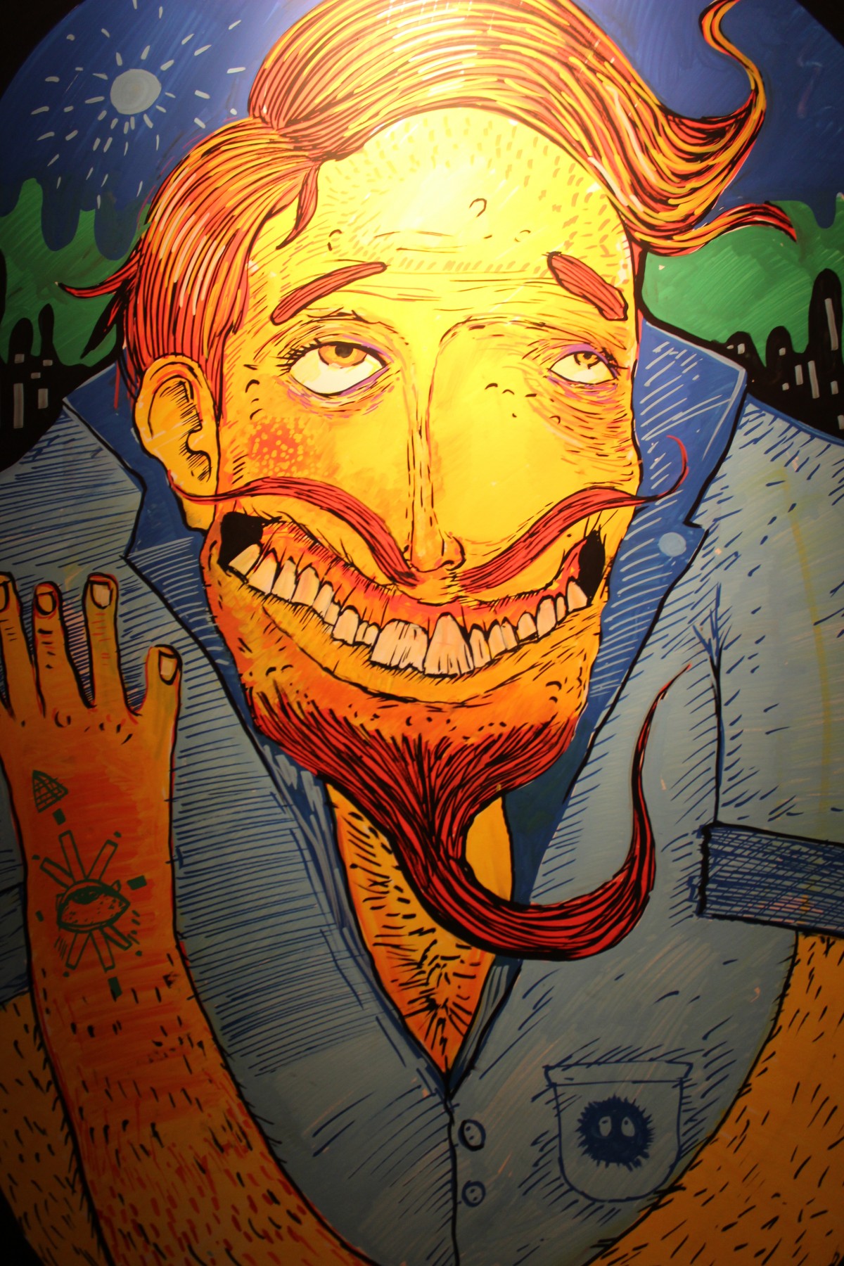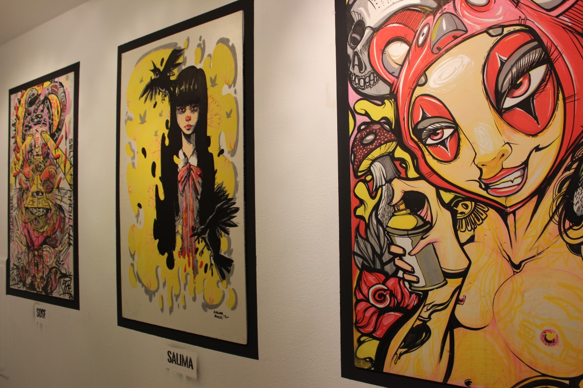 Art Jam has become just that, as the additional gallery in the basement of the cultural center proved. The walls were lined with artwork from years past, all the way to the first event in 2012. The works featured everything from political statements calling for peace and artistic freedom, to a neon Buddha staring at the viewer with his third eye. The gallery revealed reoccuring artists that have returned over the years, such as Mask, who dropped by to sign the wall below one of his pieces from the past. Of course, it is no surprise that the urban artists come back every year- the hosts are cool artists working to foster a sense of community, and the gallery offered free alchoholic beverages and electronic beats by a local DJ.
